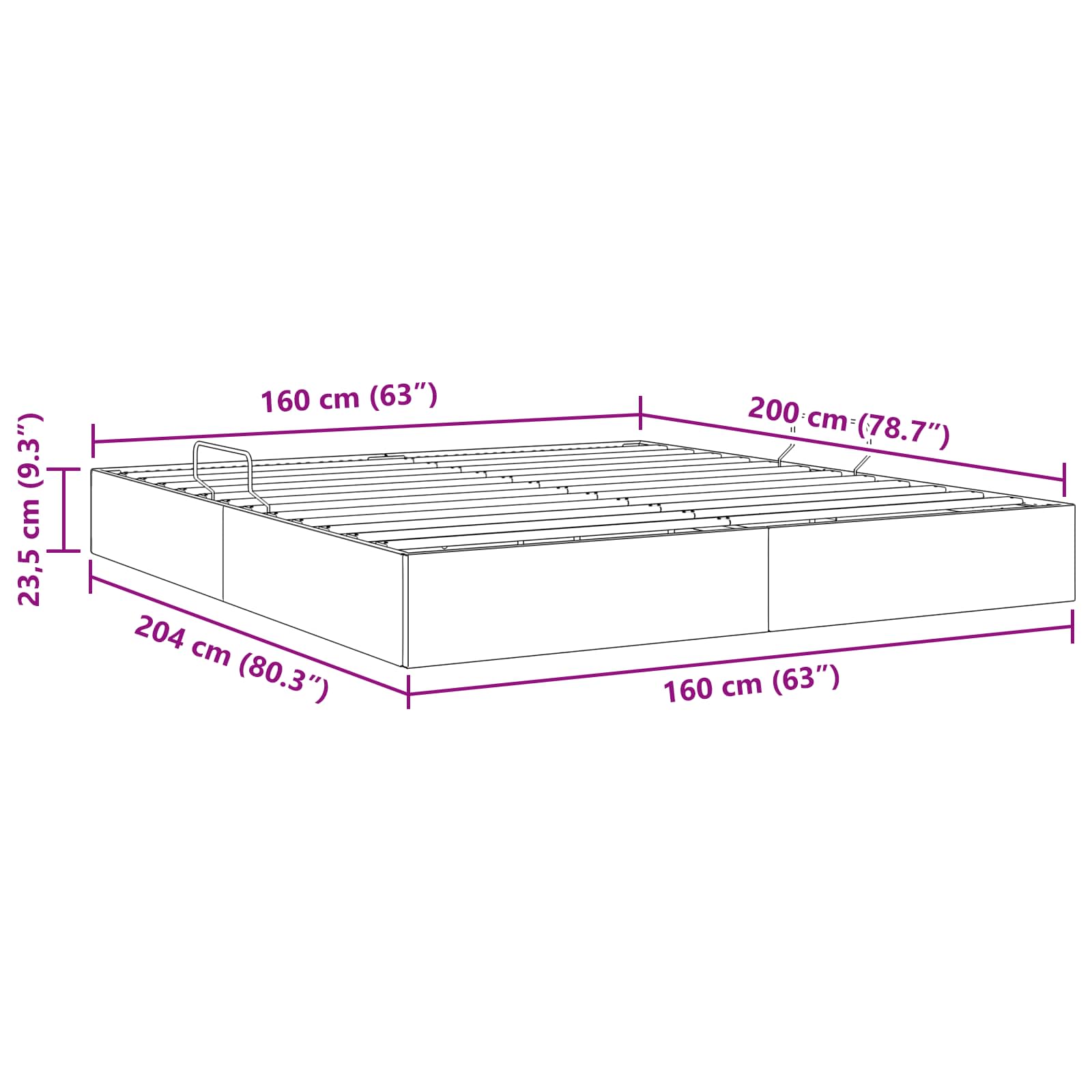 • Celkové rozměry: 204 x 160 x 23,5 cm (D x Š x V)