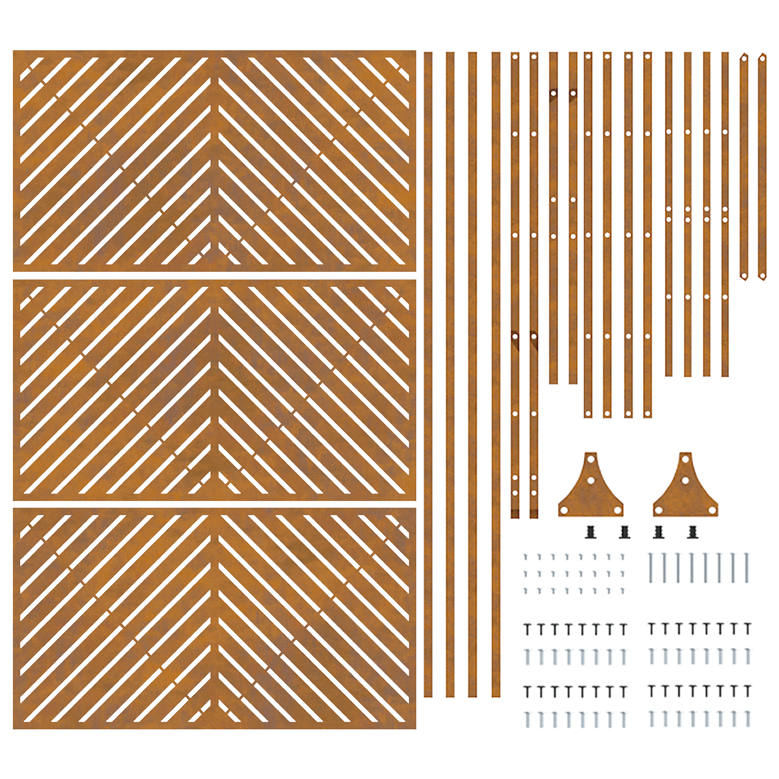 Tato zahradní clona nabízí moderní a stylové řešení pro venkovní soukromí. Její obdélníkový tvar a elegantní linie ji činí perfektním doplňkem do zahrad a na terasy. Díky své robustní konstrukci chrání vaše venkovní prostory před zvědavými pohledy a větrem, a dodává klidnou atmosféru pro relaxaci nebo zábavu s přáteli.