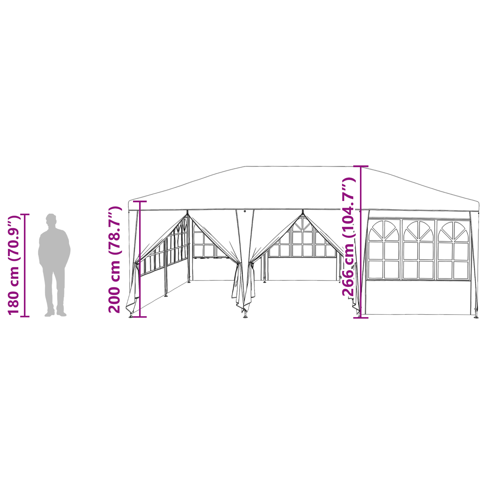 • Kvalitní materiály: Tento párty stan má hustou polyethylenovou tkaninu, odolnou proti UV záření a vodě. Díky galvanizovaným ocelovým rámům má stabilní oporu, což zaručuje dlouhou životnost i za silnějšího větru. Oba prvky zajišťují spolehlivost pro vaše venkovní akce a klid na duši.