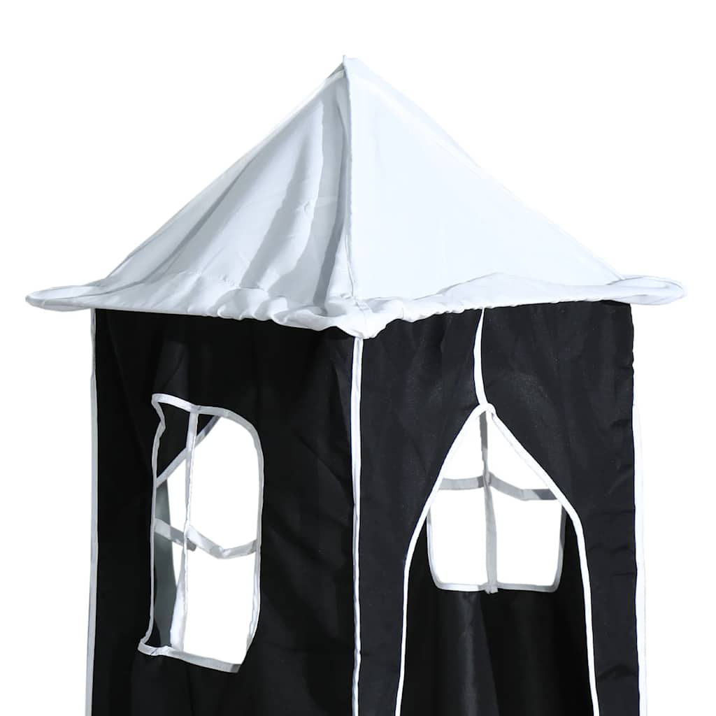 Patrová postel se skluzavkou a závěsy bílá a černá 90 x 200 cm