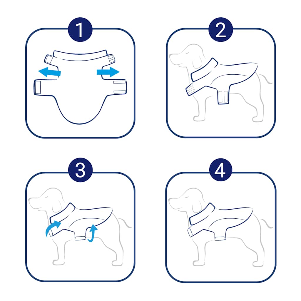 Snadné nošení: Díky zapínání na háčky a smyčky se tato pláštěnka pro psy snadno obléká i svléká. Stačí otevřít uzávěry, nastavit je pro bezpečné uchycení a vše je připraveno.