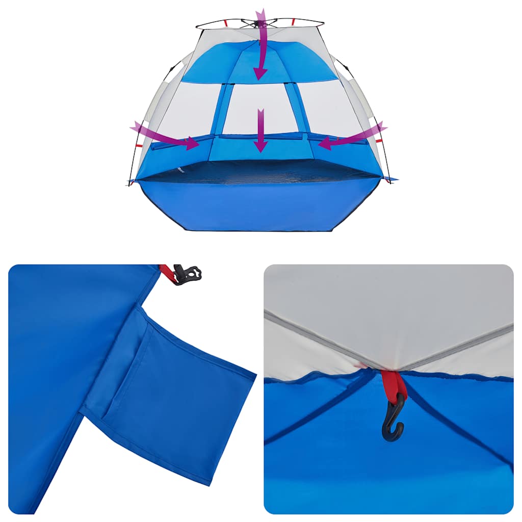 Plážový stan 2 osoby azurově modrý rychloupínací nepromokavý