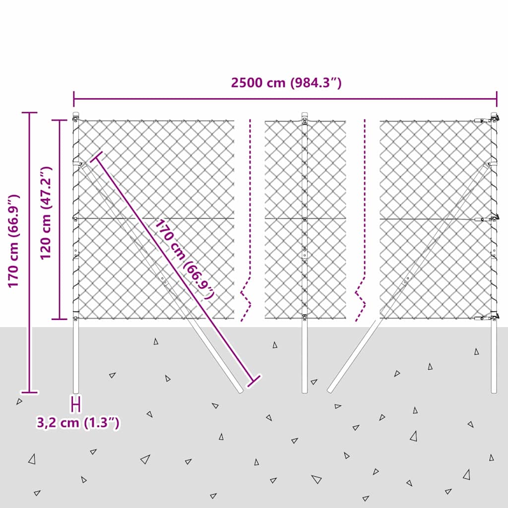 • Celkové rozměry: 2500 x 3,2 x 120 cm (D x Š x V)