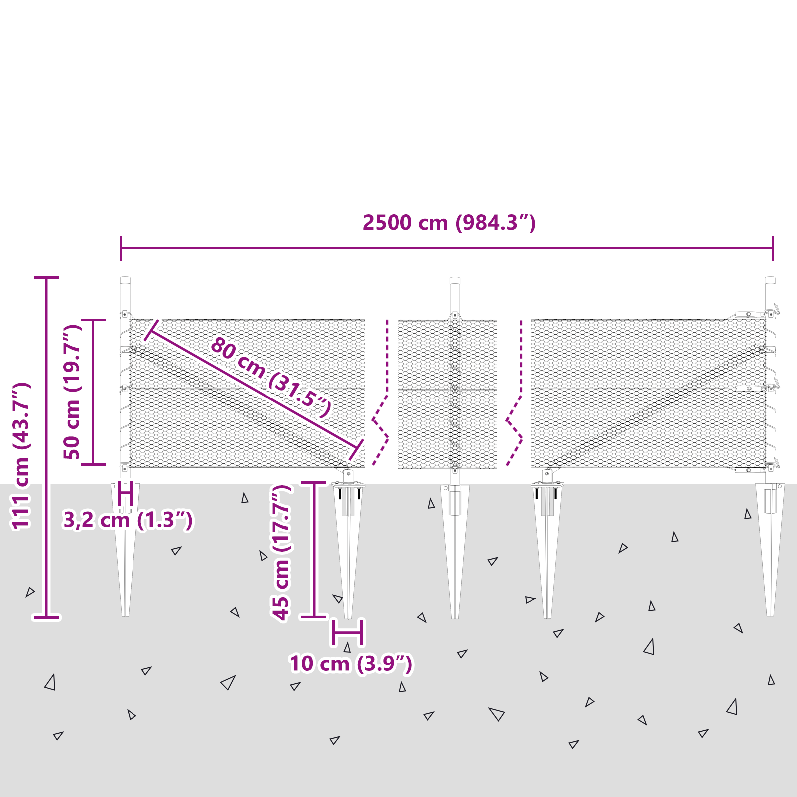 • Celkové rozměry: 2500 x 3.2 x 50 cm (D x Š x V)
