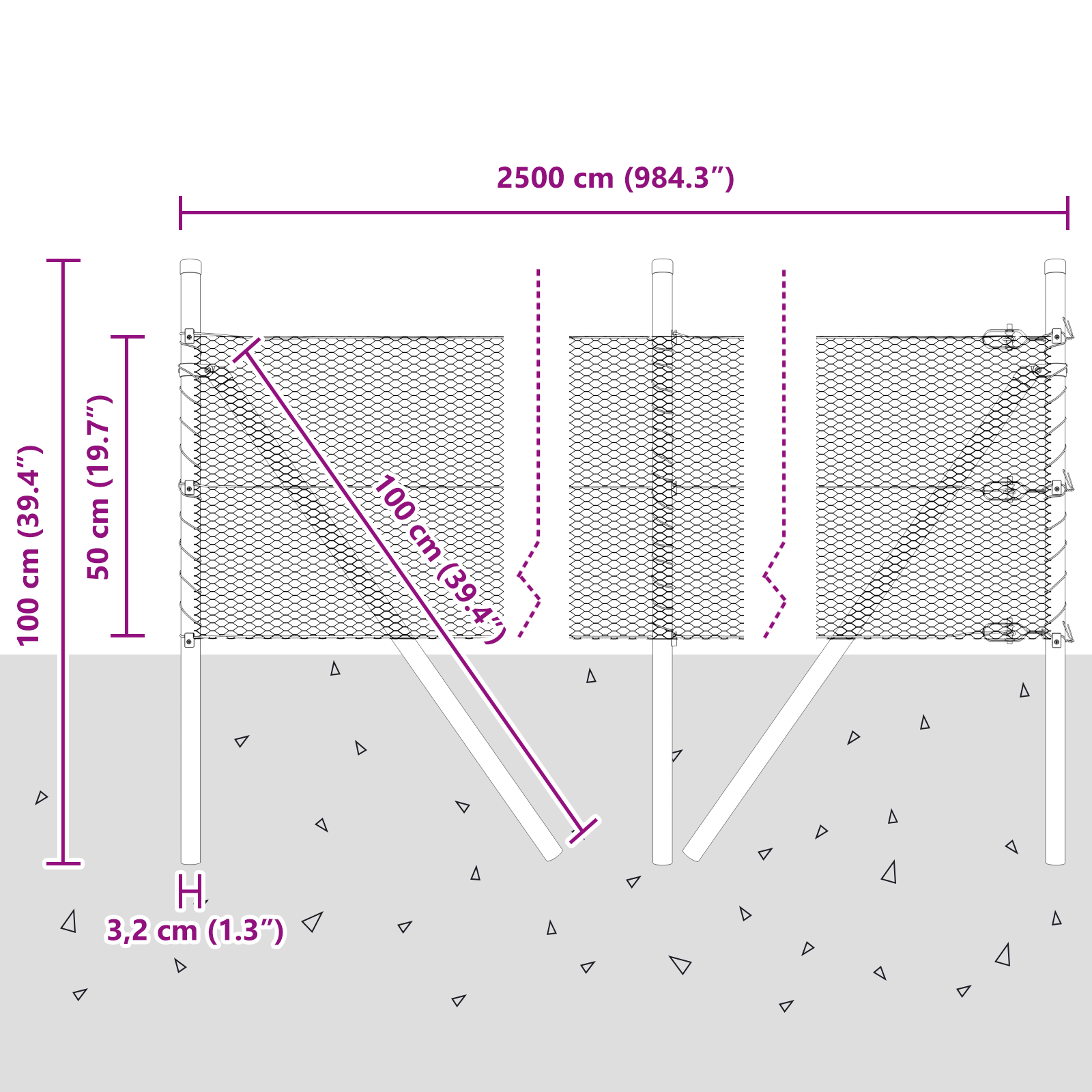 Plotový sloupek. Šedá 25 x 0,5 m (13 mm síť) Ocel