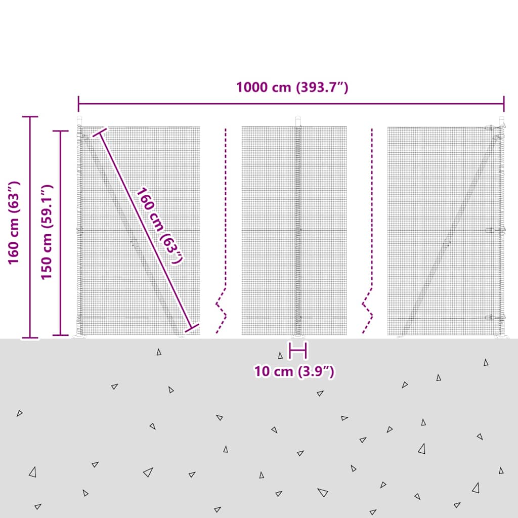 • Celkové rozměry: 1000 x 3,2 x 150 cm (D x Š x V)