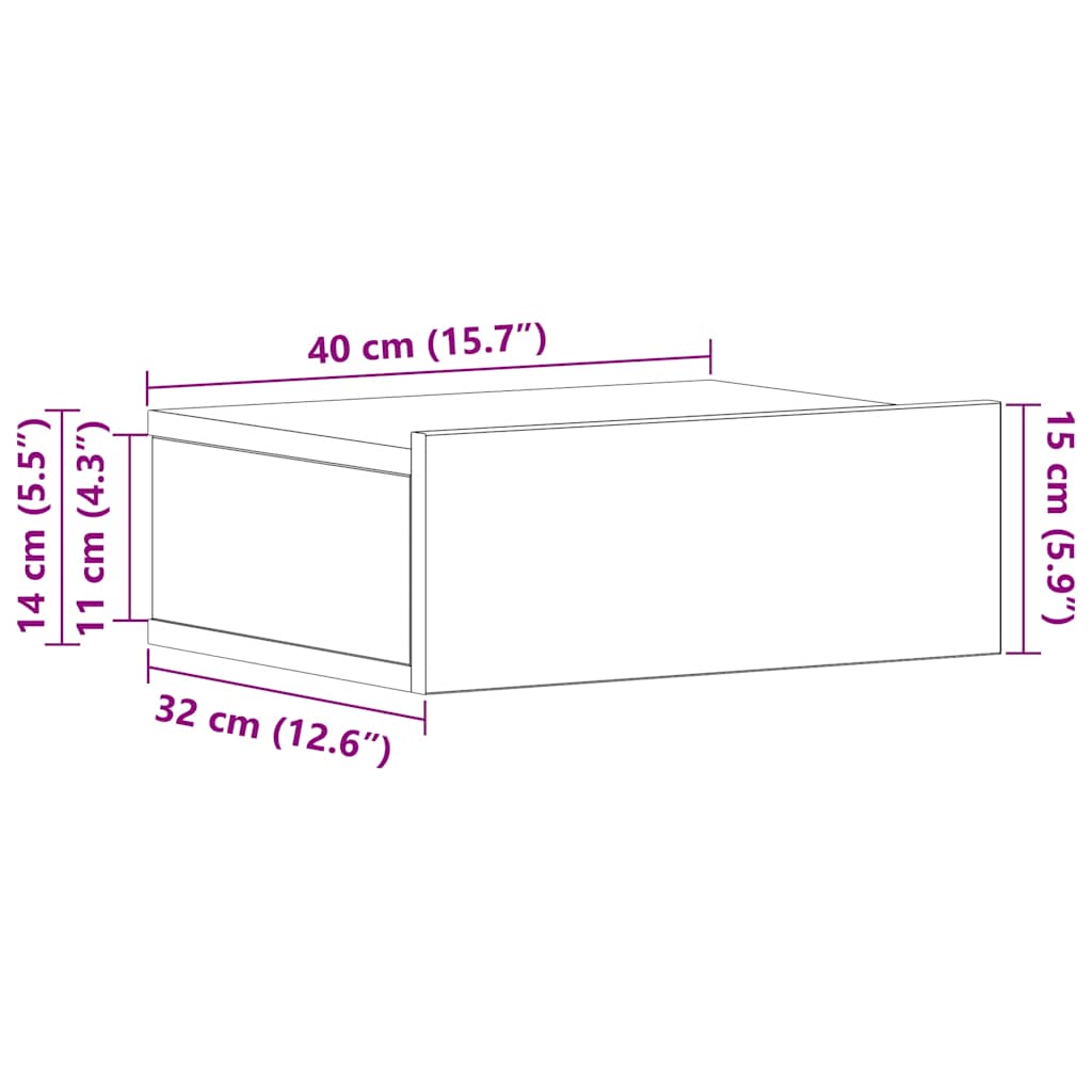 Noční stolek je určený k montáži na stěnu. Je vyrobený z prvotřídního kompozitního dřeva, a je proto robustní a odolný a bude vám sloužit po dlouhá léta. Má pevnou horní desku a integrovanou zásuvku, která nabízí dostatek úložného prostoru pro přehledné uspořádání vašich časopisů, knih, multimediálních zařízení a dalších dekorativních předmětů, které byste měli rádi na dosah ruky. Kompaktní noční stolek šetří místo a představuje ideální úložné řešení pro každé bydlení, a dokonce i pro ty nejmenší místnosti.