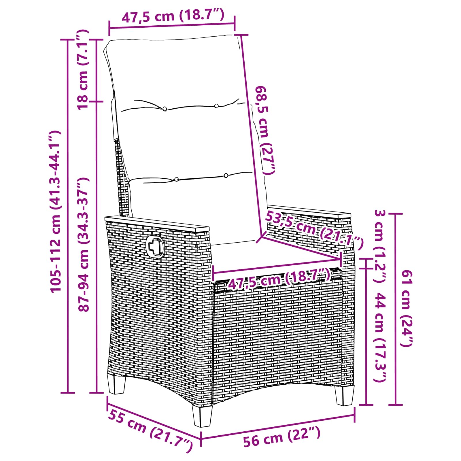 Toto moderní naklápěcí zahradní křeslo je perfektní pro ty, kdo chtějí styl i funkčnost. S krásnou, štíhlou siluetou spojuje estetiku s pohodlím, nabízí práškově lakovanou ocel s jemným poly ratanu. Je jako stvořené pro relaxaci na zahradě nebo terase, skvěle ladí s přírodním prostředím díky svým klidným zemitým barvám a modernímu designu.