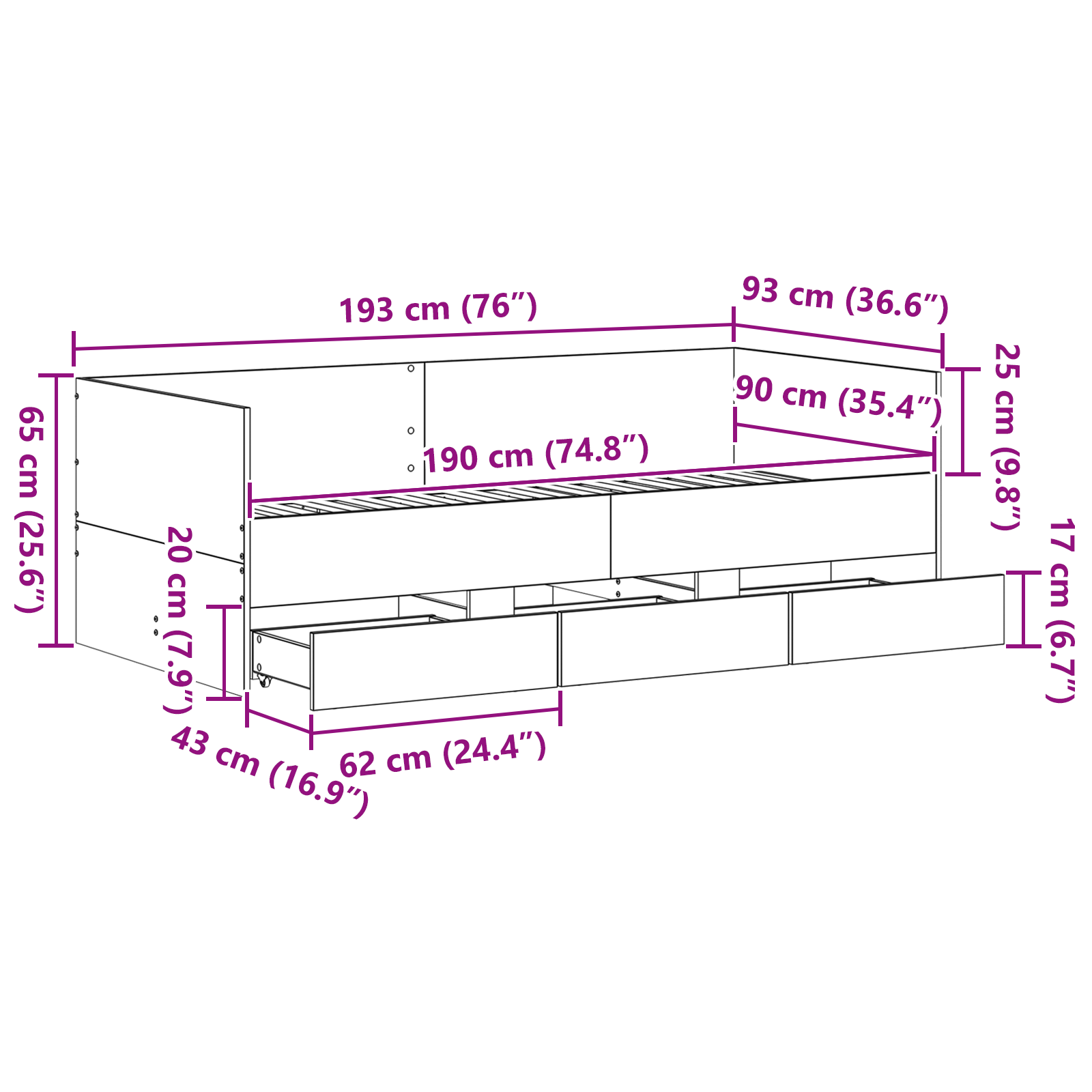 Daybed s čelo Artisanový dub 90 x 190 cm kompozitní dřevo