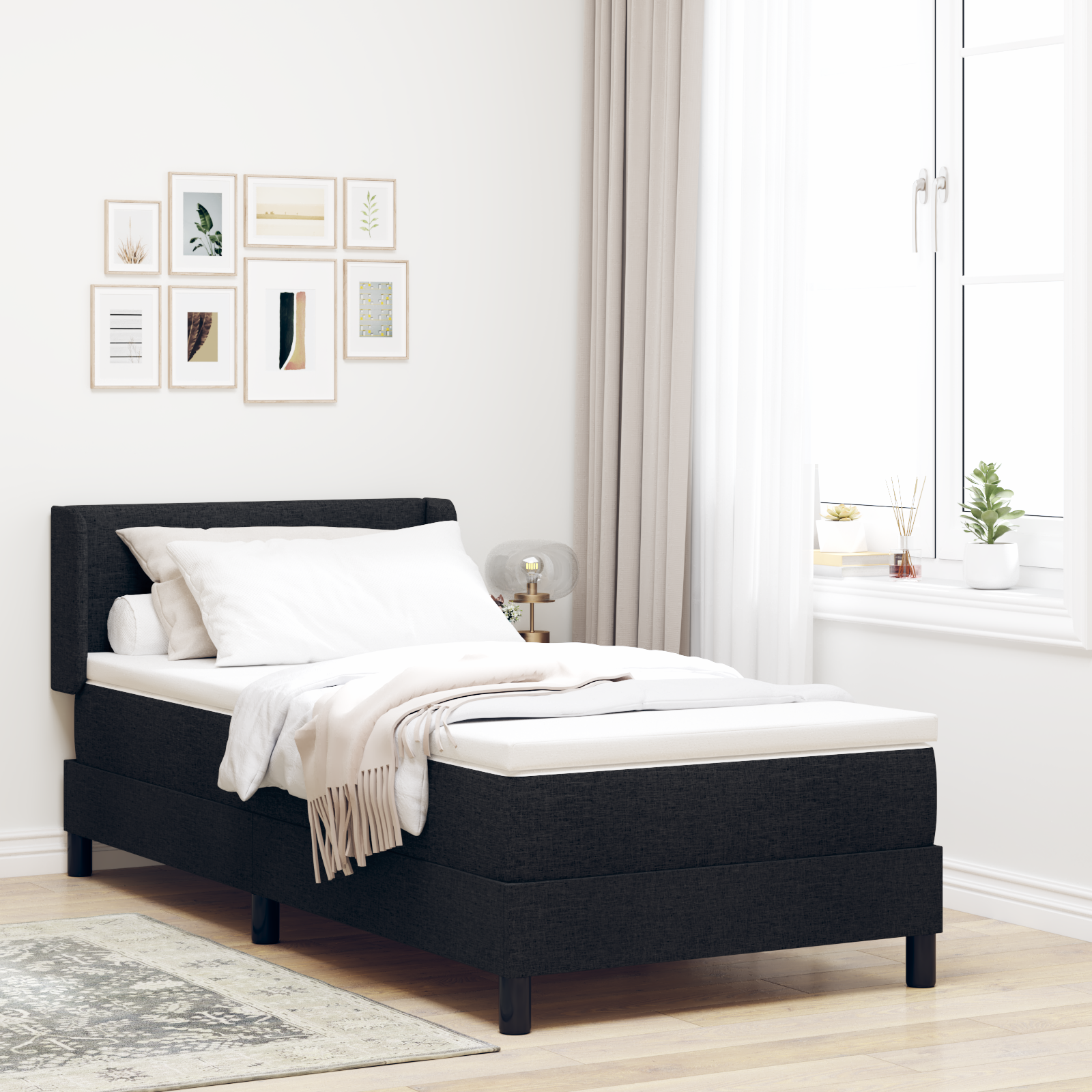 Postel s boxspringem s matrací s čelo Černá 190 x 90 cm textil