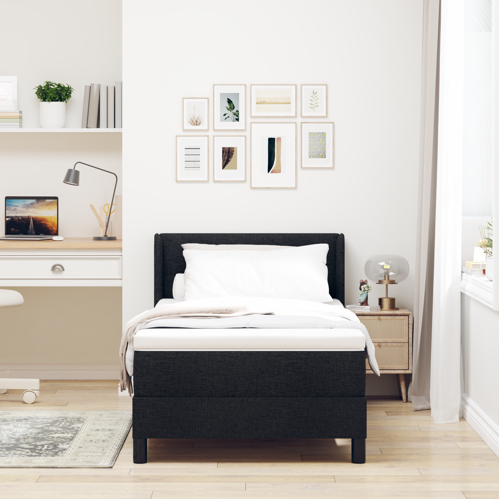 Moderní box spring postel má úžasný design, který se skvěle hodí k současnému dekoru, ideální pro všechny, co hledají více funkčnosti a estetiky. Tato postel, navržená jednoduše, se stává hlavním bodem každé ložnice a zve vás k pohodlí a stylu. Všechno – od hezky navrženého čela po pohodlnou matraci – dává prostor pro klidný spánek a stylovou domácnost.