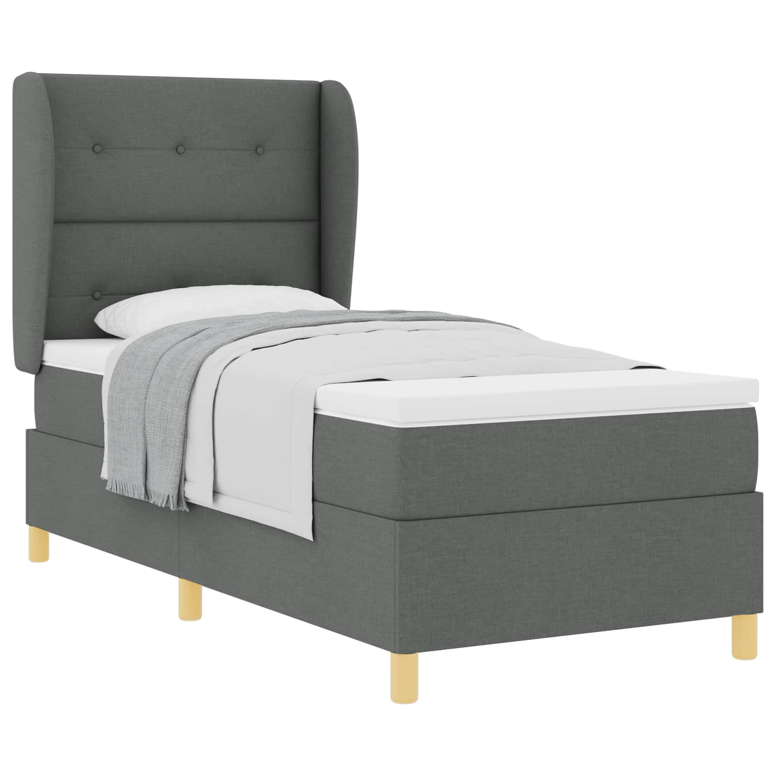 Postel s pružinami a matrací ve tmavě šedé látce je místem, kde se potkává moderní styl a praktičnost. Je to výrazný kousek do každý ložnice, má jasné linie a jednoduchý vzhled. Určitě oceníte, jak spojuje pohodlí s pevnou konstrukcí, což ji dělá ideální pro každého.