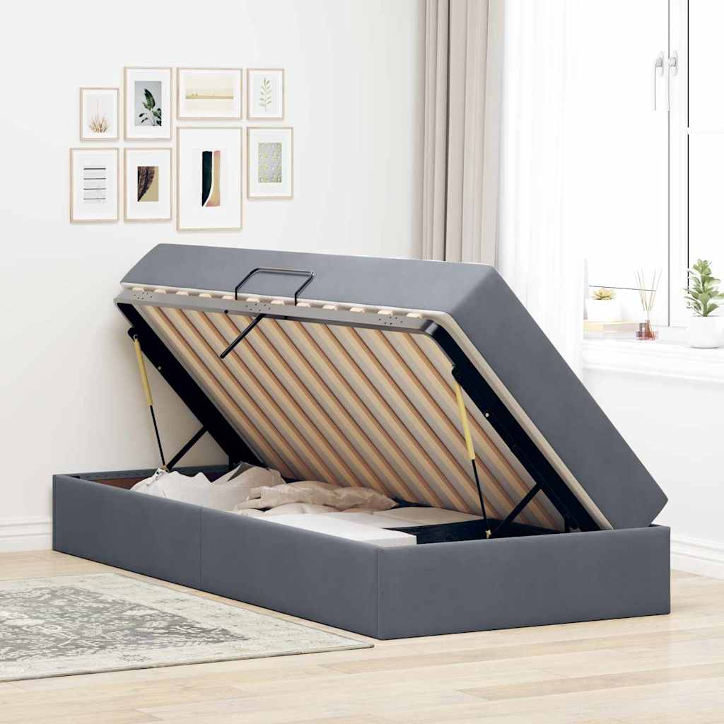 Postel s úložným prostorem a matrací Tmavě šedá 90 x 190 cm