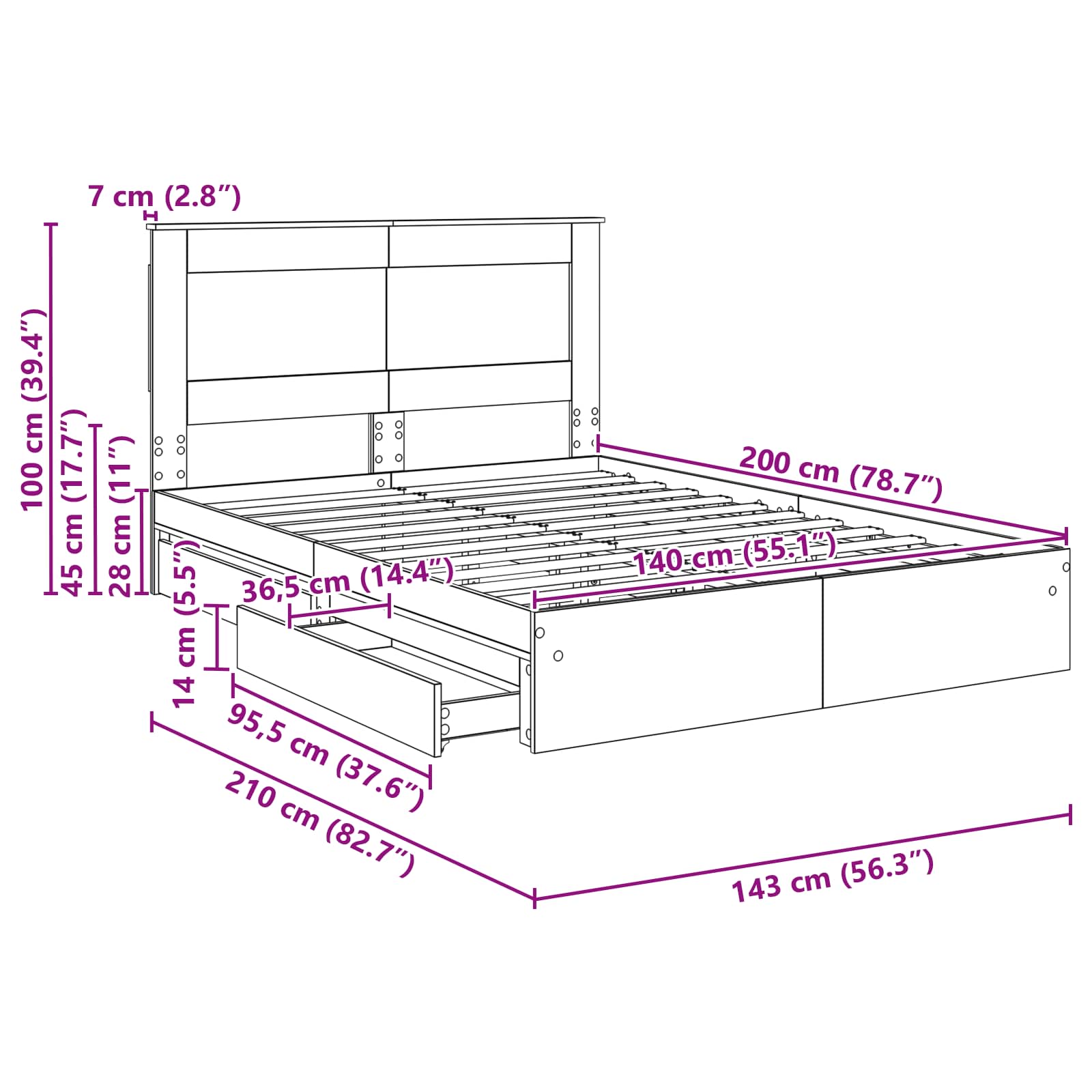 • Kompatibilní velikost matrace: Dvojpostel (140 cm x 200 cm nebo 55" x 79")