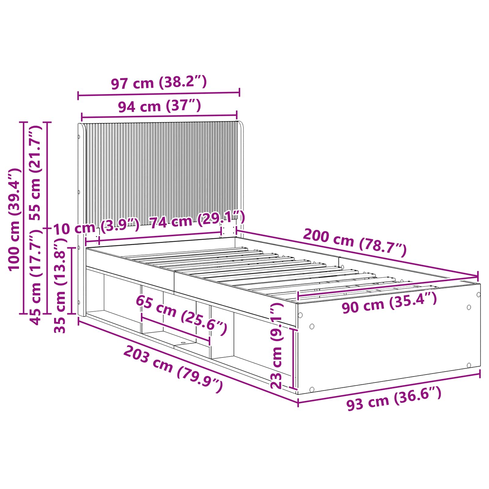 • Design čelního polštáře s lamelami: Tento rám postele s lamelovým čelním polštářem spojuje pohodlí s nadčasovou elegancí. Dává oporu na lenošení, čtení nebo odpočinek v posteli, zatímco jeho styl dodává do ložnice elegantní nádech.