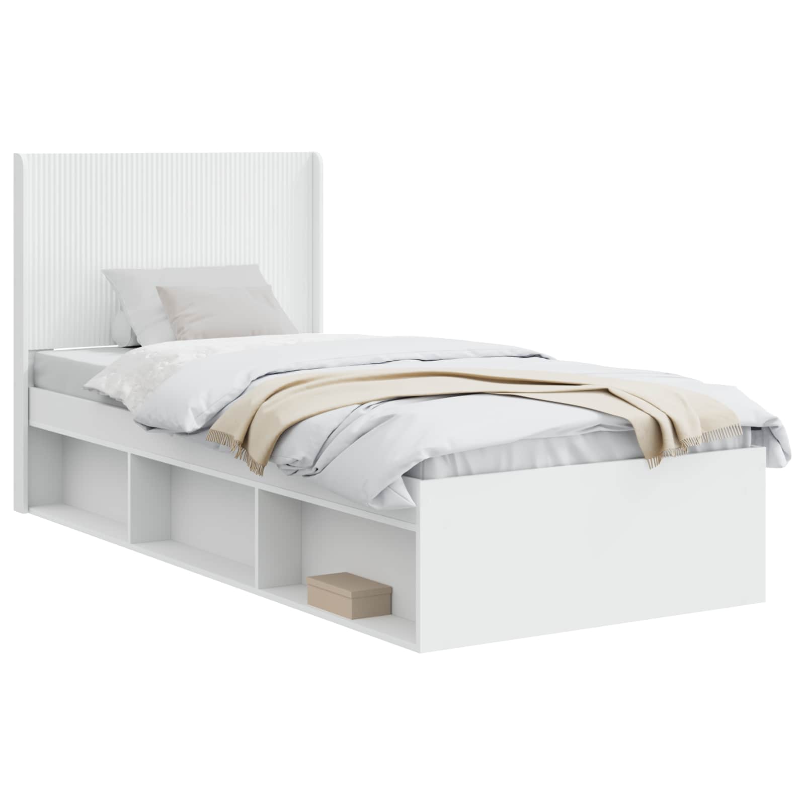 Postelový rám s úložným prostorem a hlavovou opěrkou Bílá