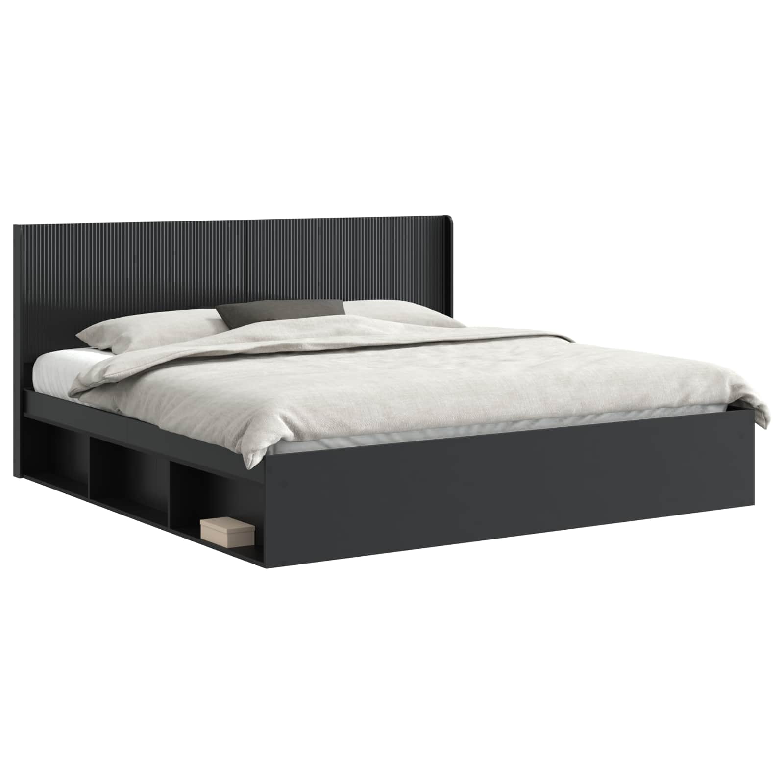 Postelový rám s úložným prostorem a hlavovou opěrkou Černá