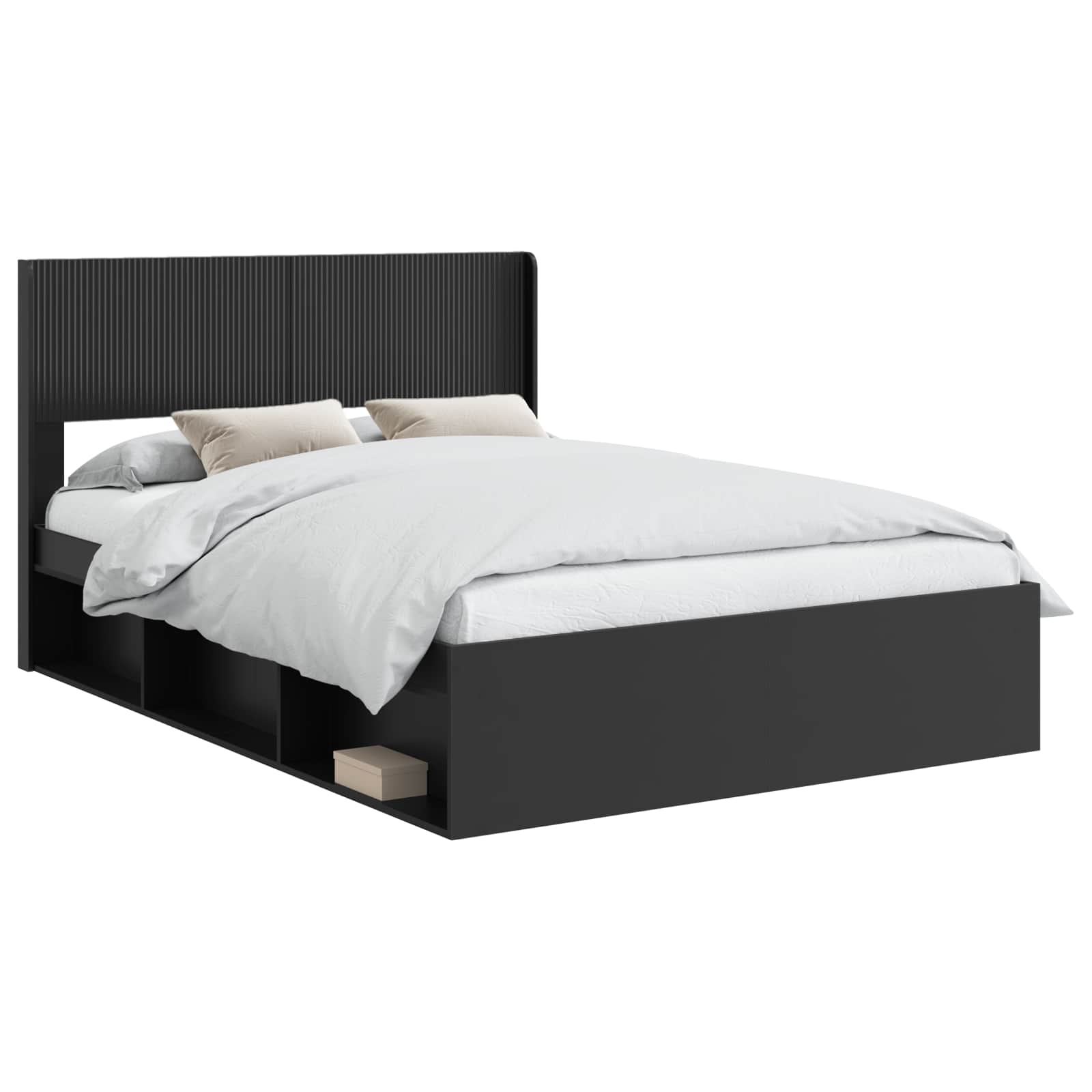 Postelový rám s úložným prostorem a hlavovou opěrkou Černá