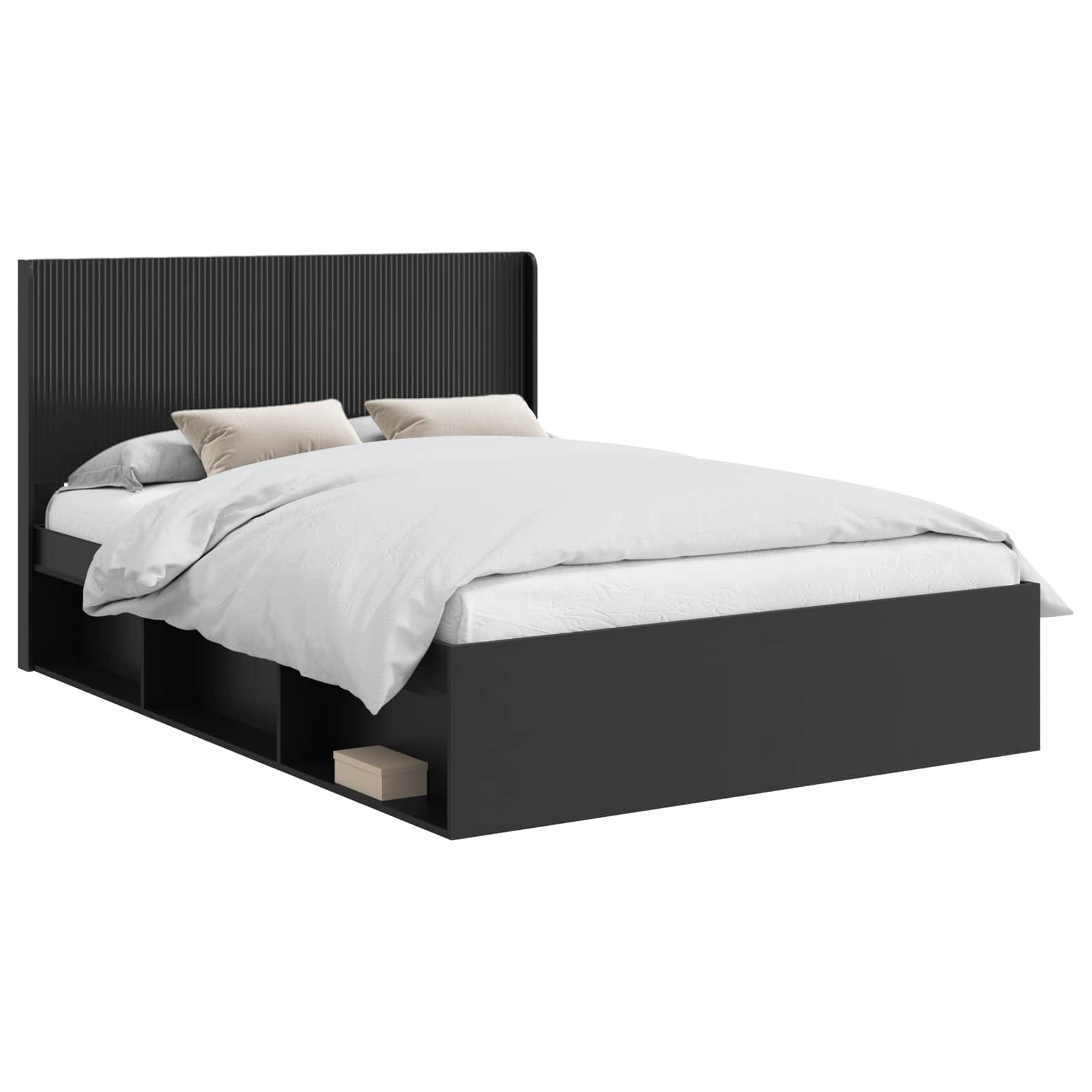 Postelový rám s úložným prostorem a hlavovou opěrkou Černá