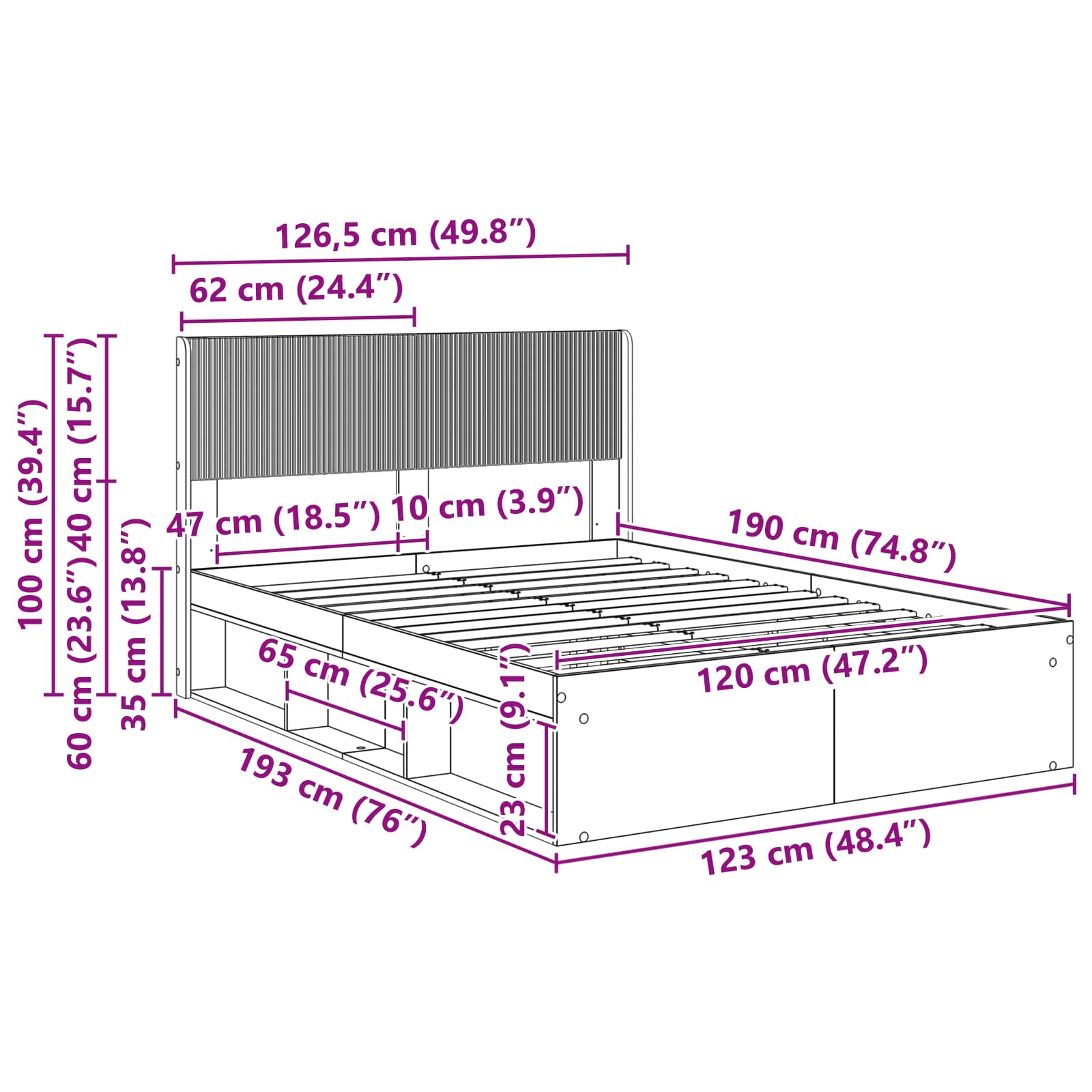• Vestavěné úložiště: Chápeme, že je potřeba mít v ložnici více úložného prostoru. Tento rám postele nabízí praktické vestavěné úložné prostory, takže budete mít spací prostor v pořádku a bez nepořádku.