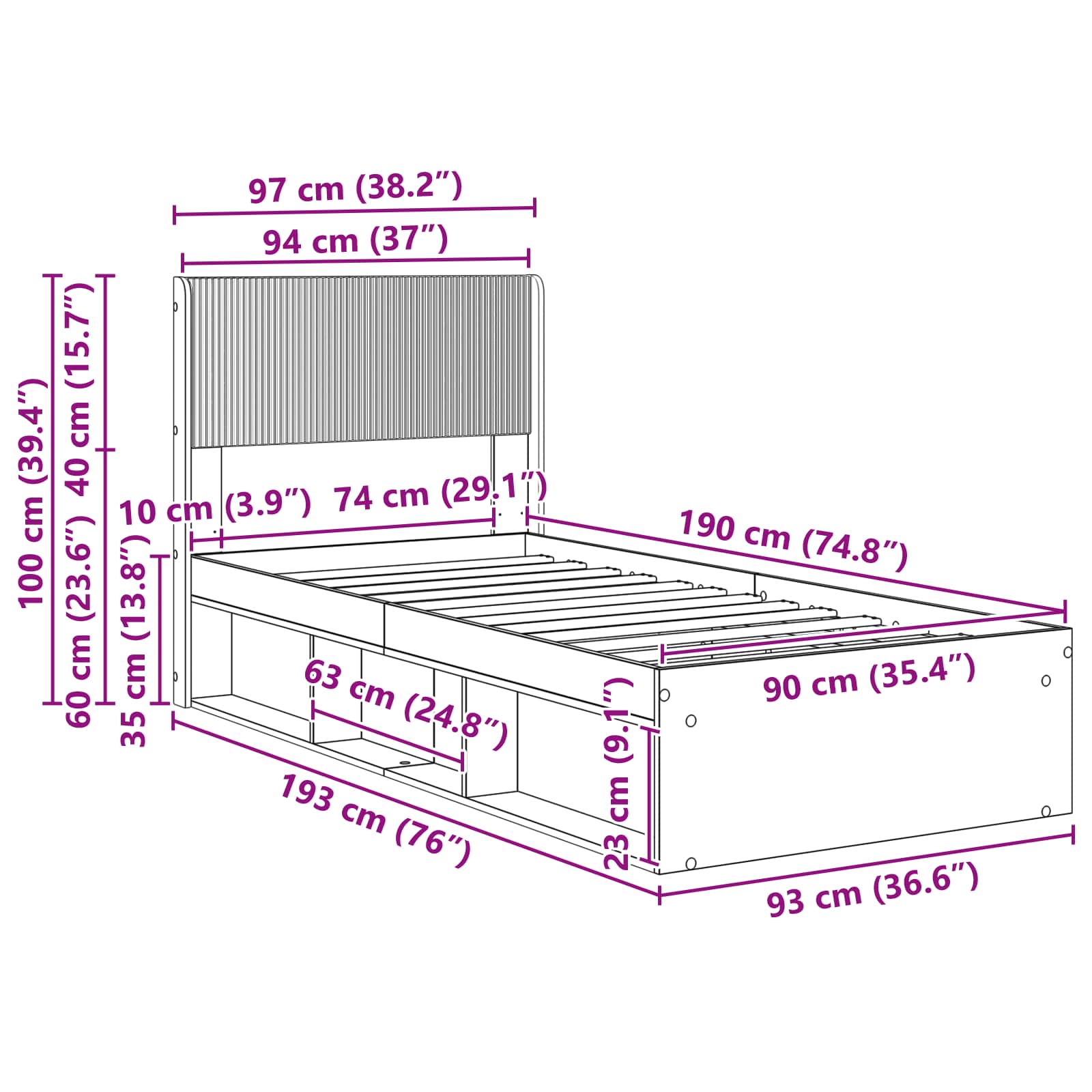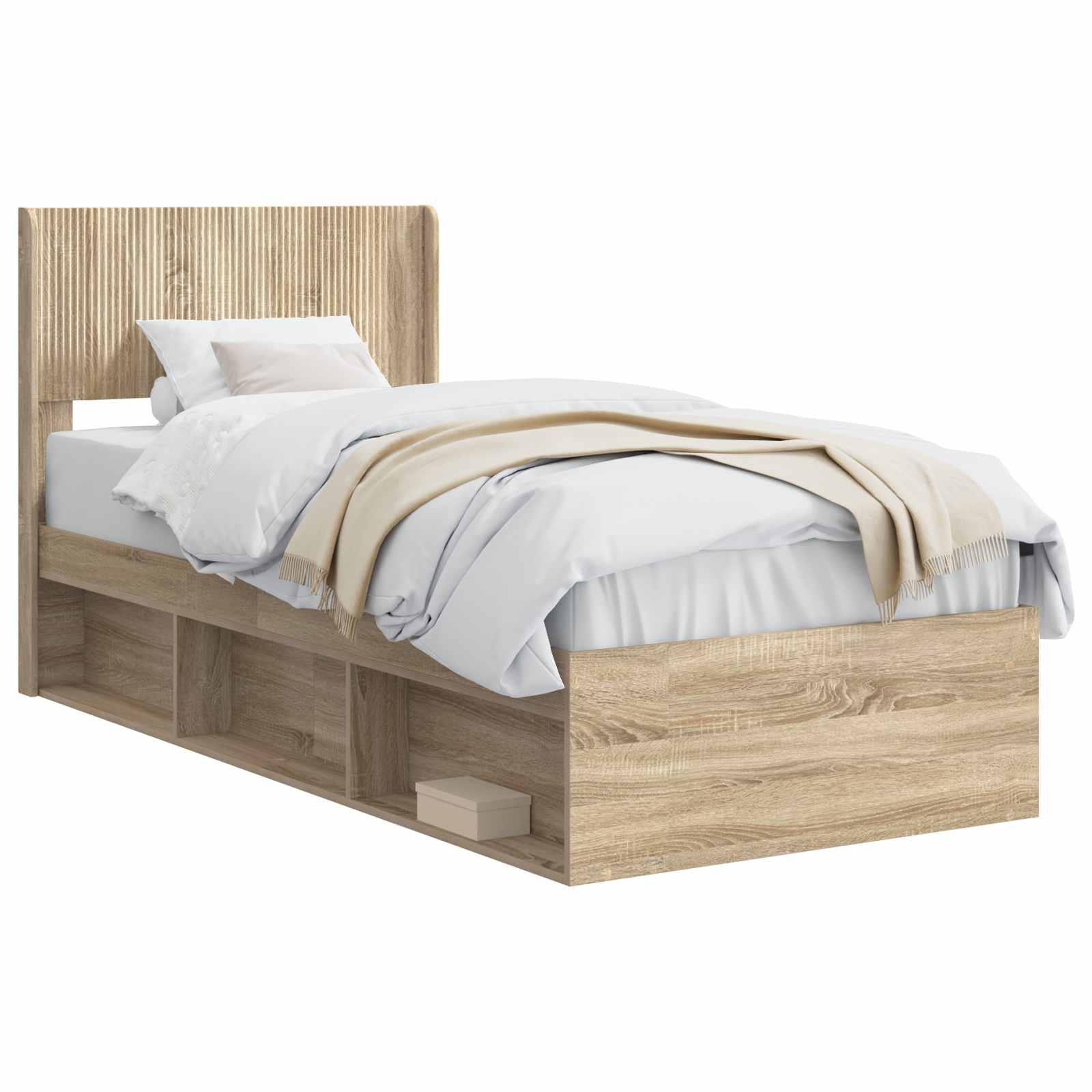 Postelový rám s úložným prostorem a hlavovou opěrkou Dub sonoma