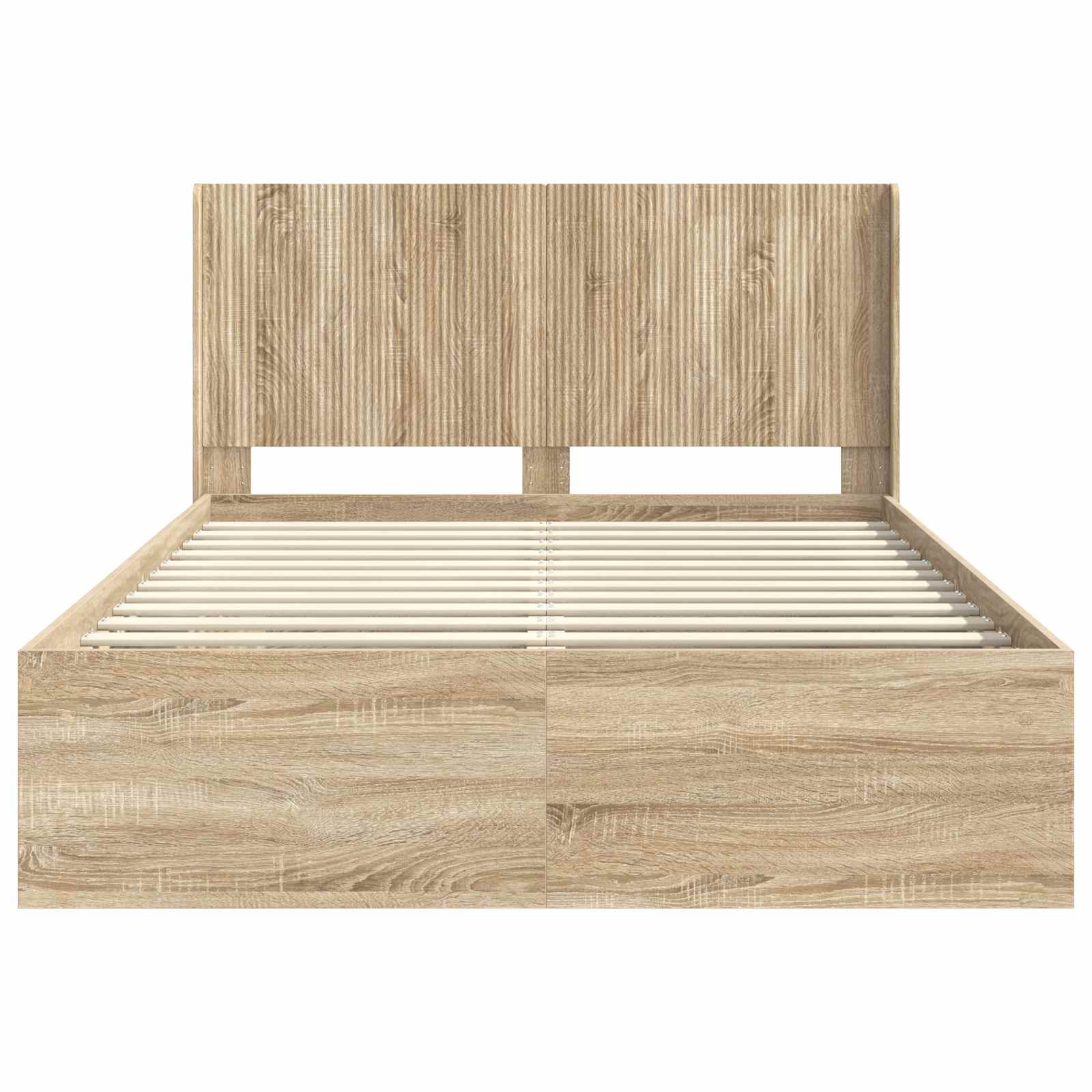 Postelový rám s úložným prostorem a hlavovou opěrkou Dub sonoma
