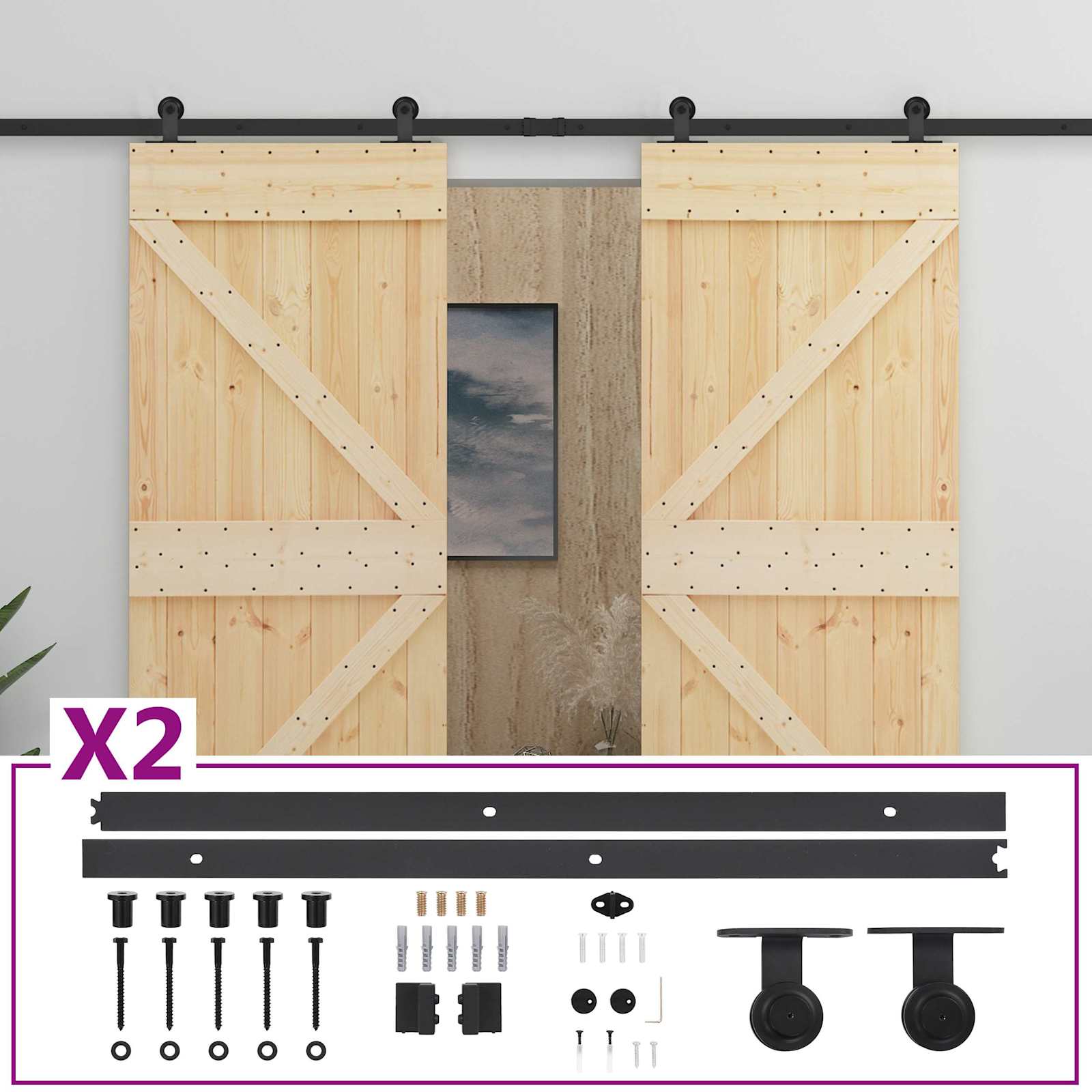 Posuvné dveře 2 pcs Přirozená a černá Masivní borovicové dřevo