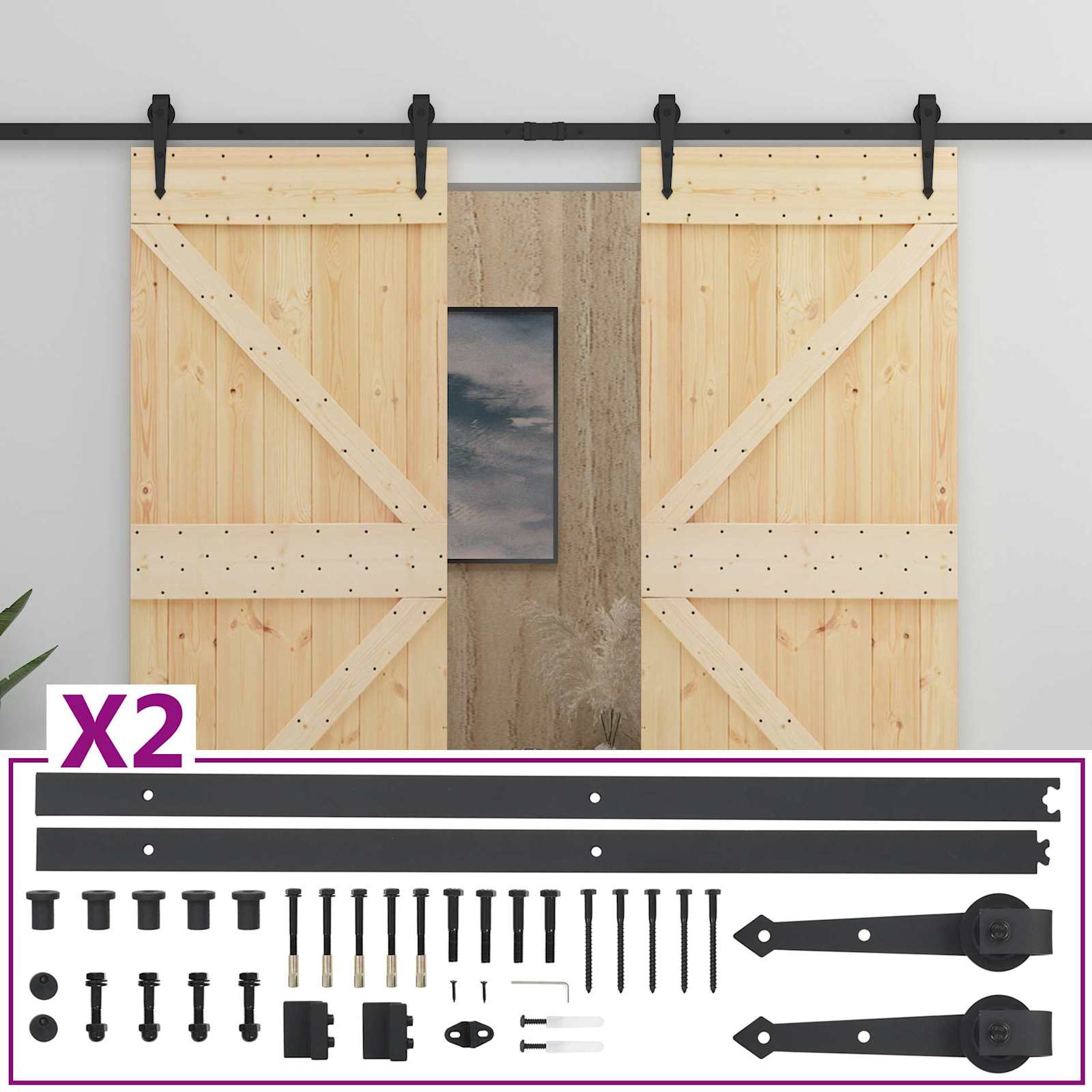 Posuvné dveře 2 pcs Přirozená a černá Masivní borovicové dřevo