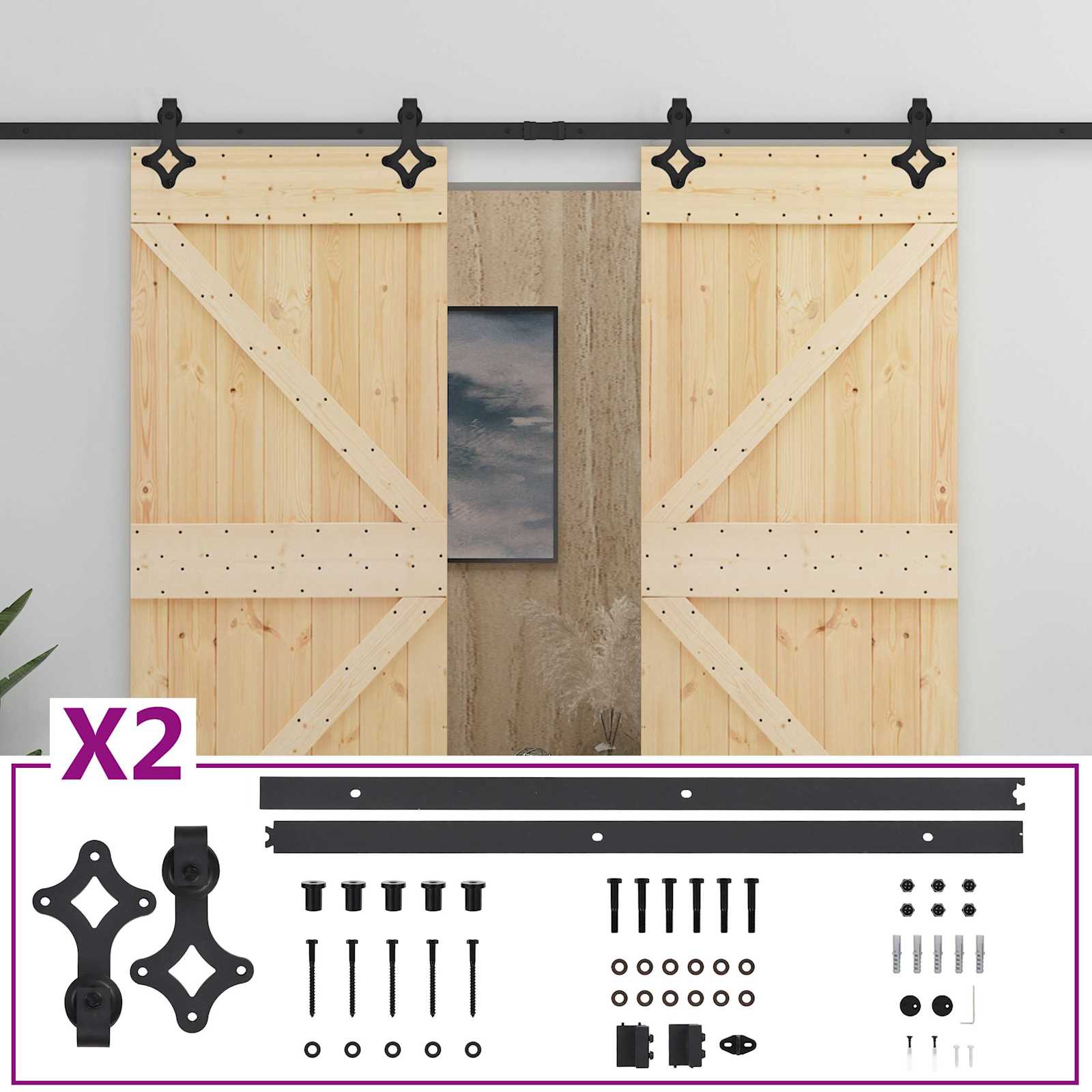 Posuvné dveře 2 pcs Přirozená a černá Masivní borovicové dřevo