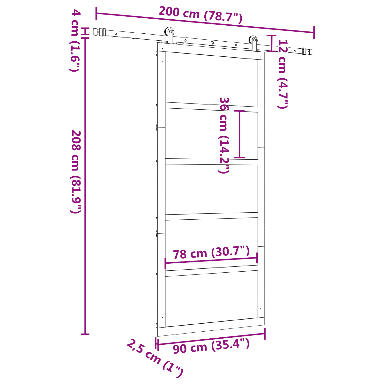 • Celkové rozměry: 200 x 2,5 x 208 cm (D x Š x V)