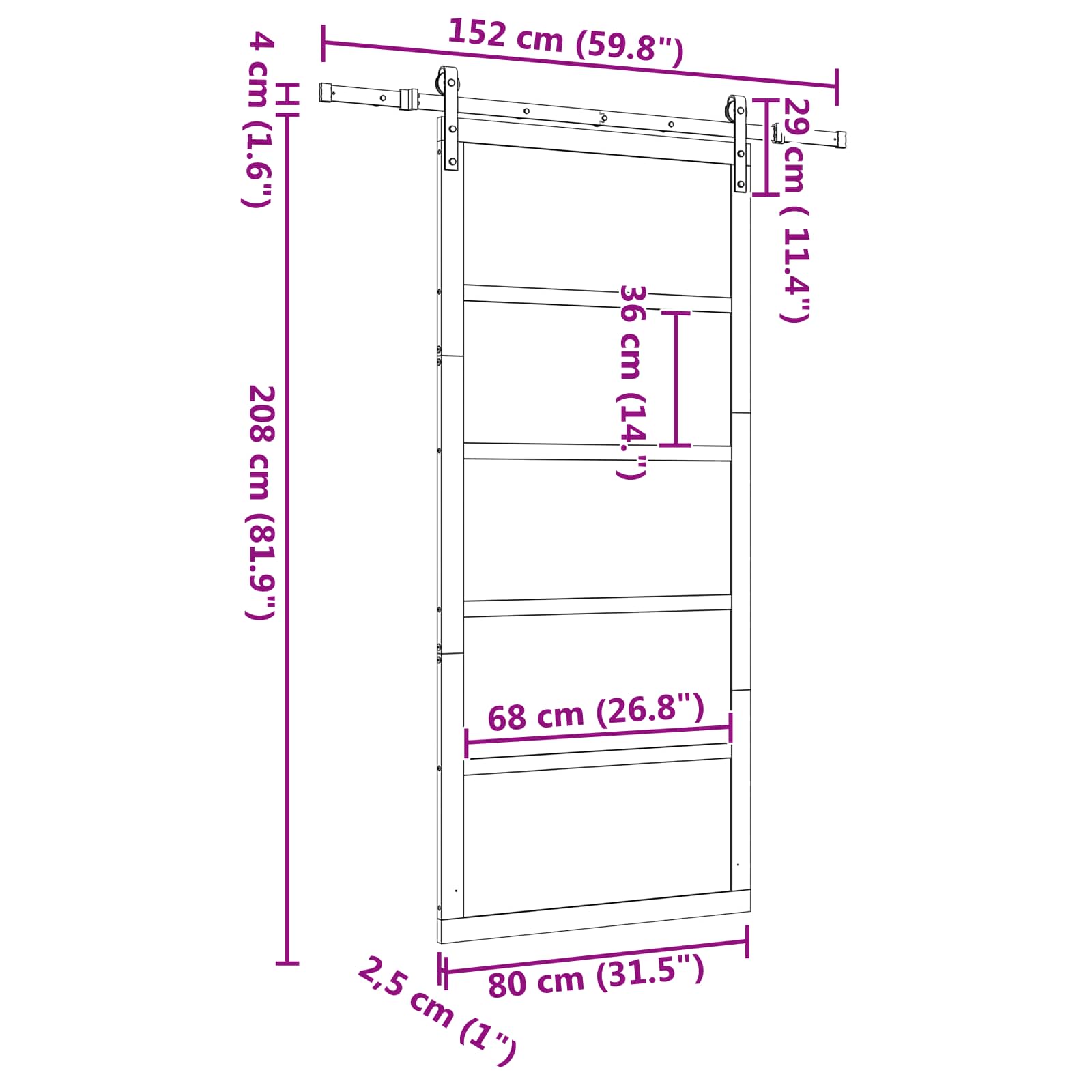 Celkové rozměry: 152,5 x 2,5 x 208 cm (D x Š x V)