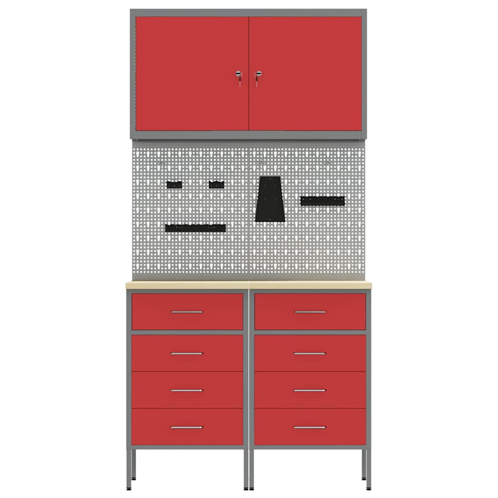 Pracovní skříň se zámkem 5 pcs Červená Inženýrské dřevo a ocel