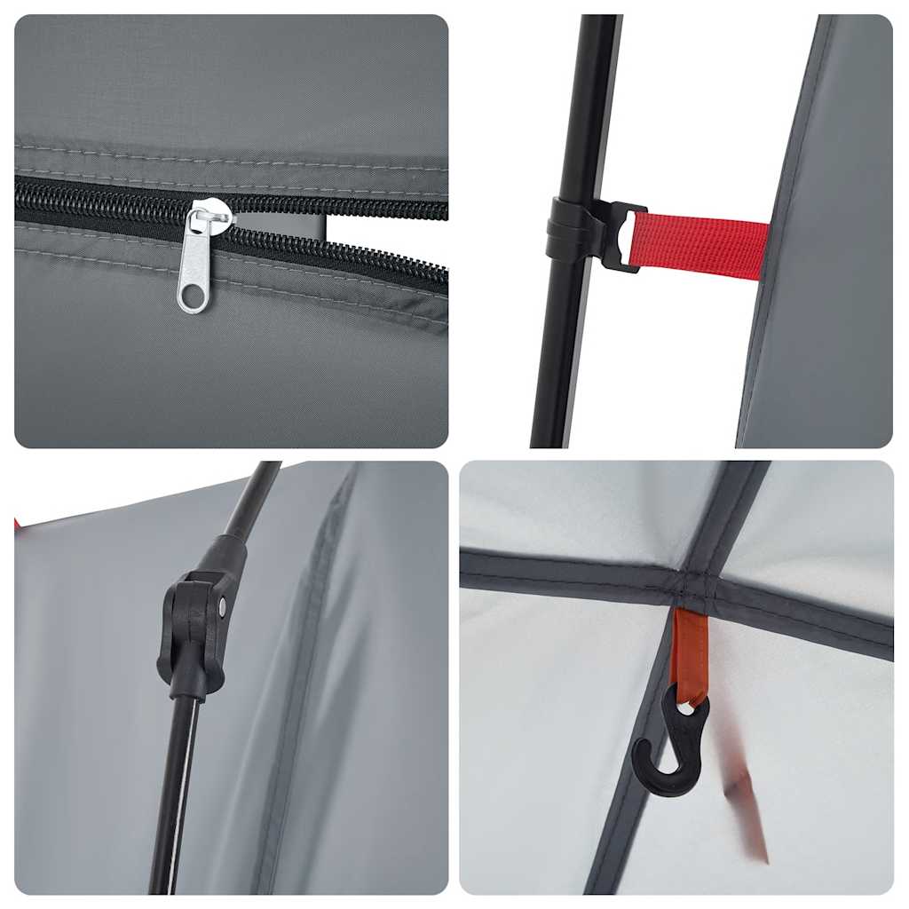 Rychloupínací systém: Postavte stan snadno a bez námahy pomocí rychloupínacího systému! Stan položte na zem, roztáhněte předem sestavené tyče, dokud nezapadnou na své místo, a vše je hotovo!