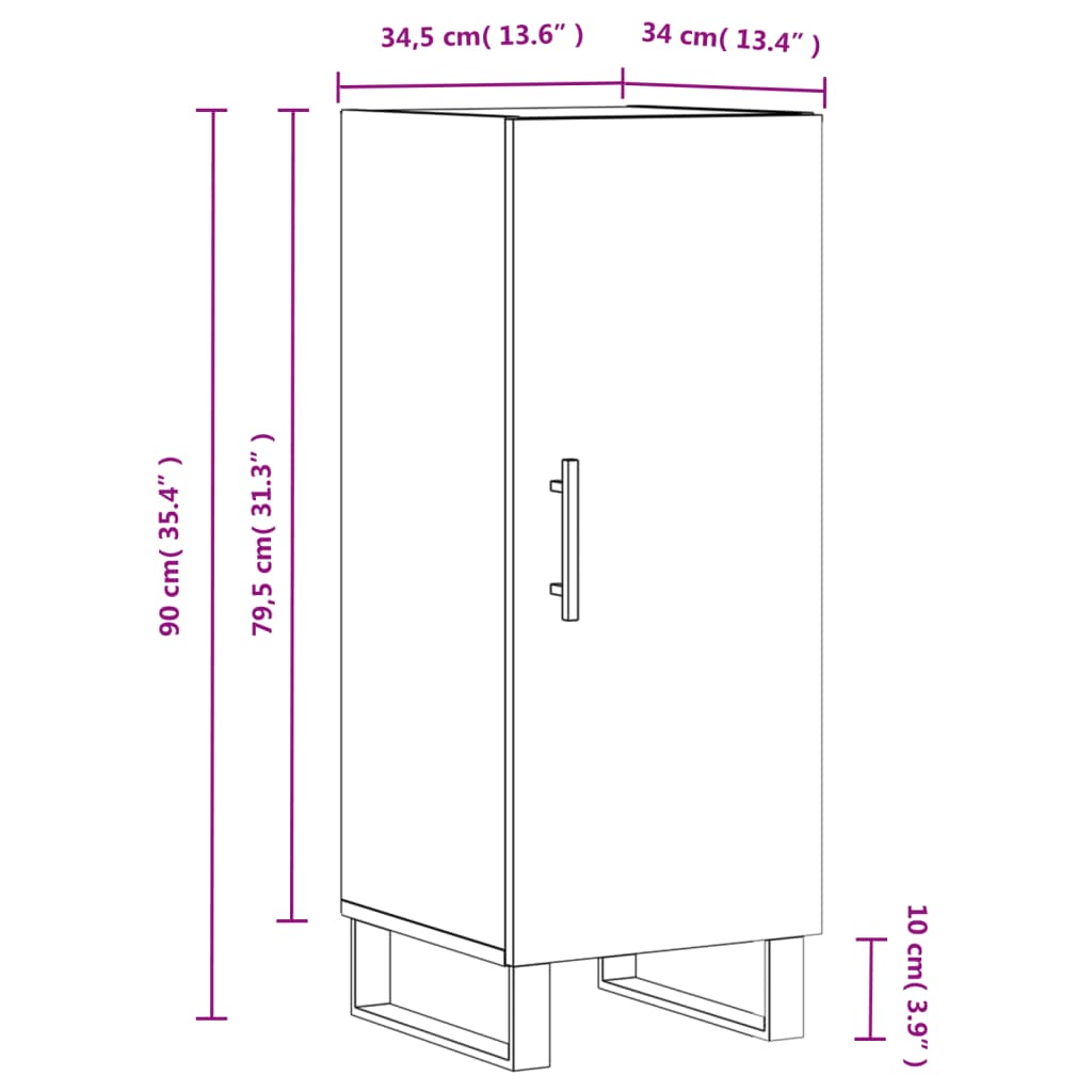 Celkové rozměry: 34,5 x 34 x 90 cm (D x Š x V)