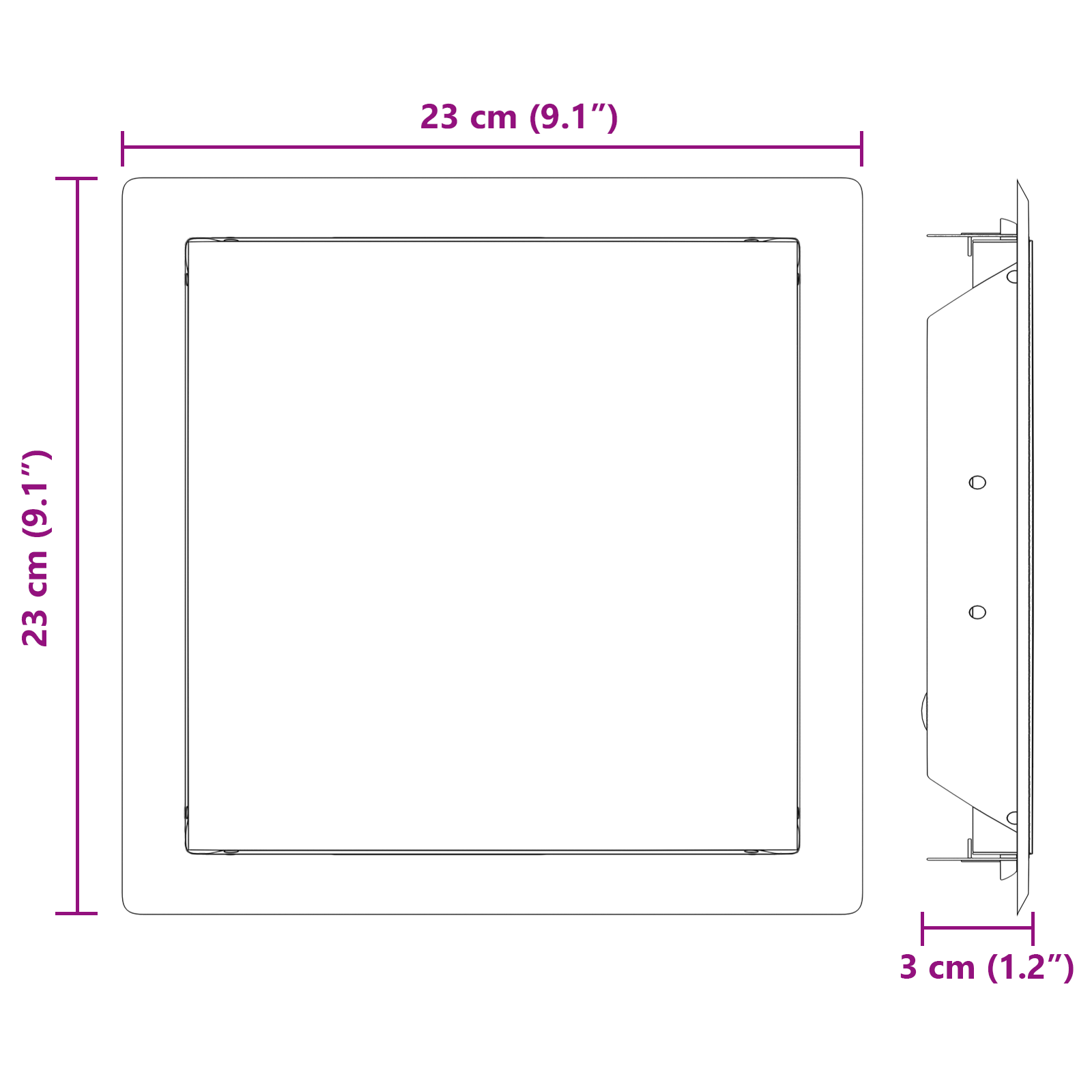 • Celkové rozměry: 23 x 23 x 3 cm (D x Š x V)