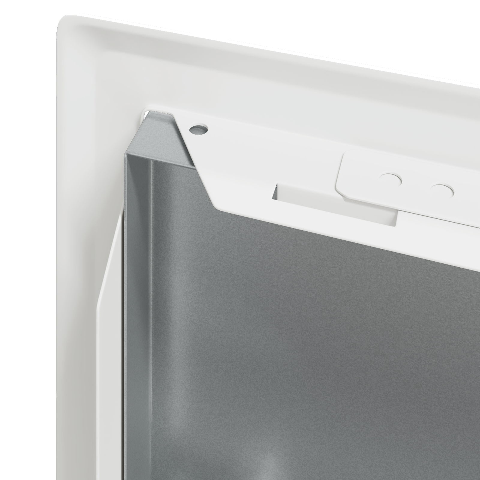 Tato bezpečnostní uzamykací hatch spojuje moderní funkčnost s hezkým vzhledem. Hladký povrch a matný finish skvěle sednou do jakéhokoli interiéru, což ji dělá univerzální pro užitkové místnosti a skladovací prostory. Je kombinací kvalitní oceli a plastu, což zajišťuje její odolnost a užitečnost jak uvnitř, tak venku.