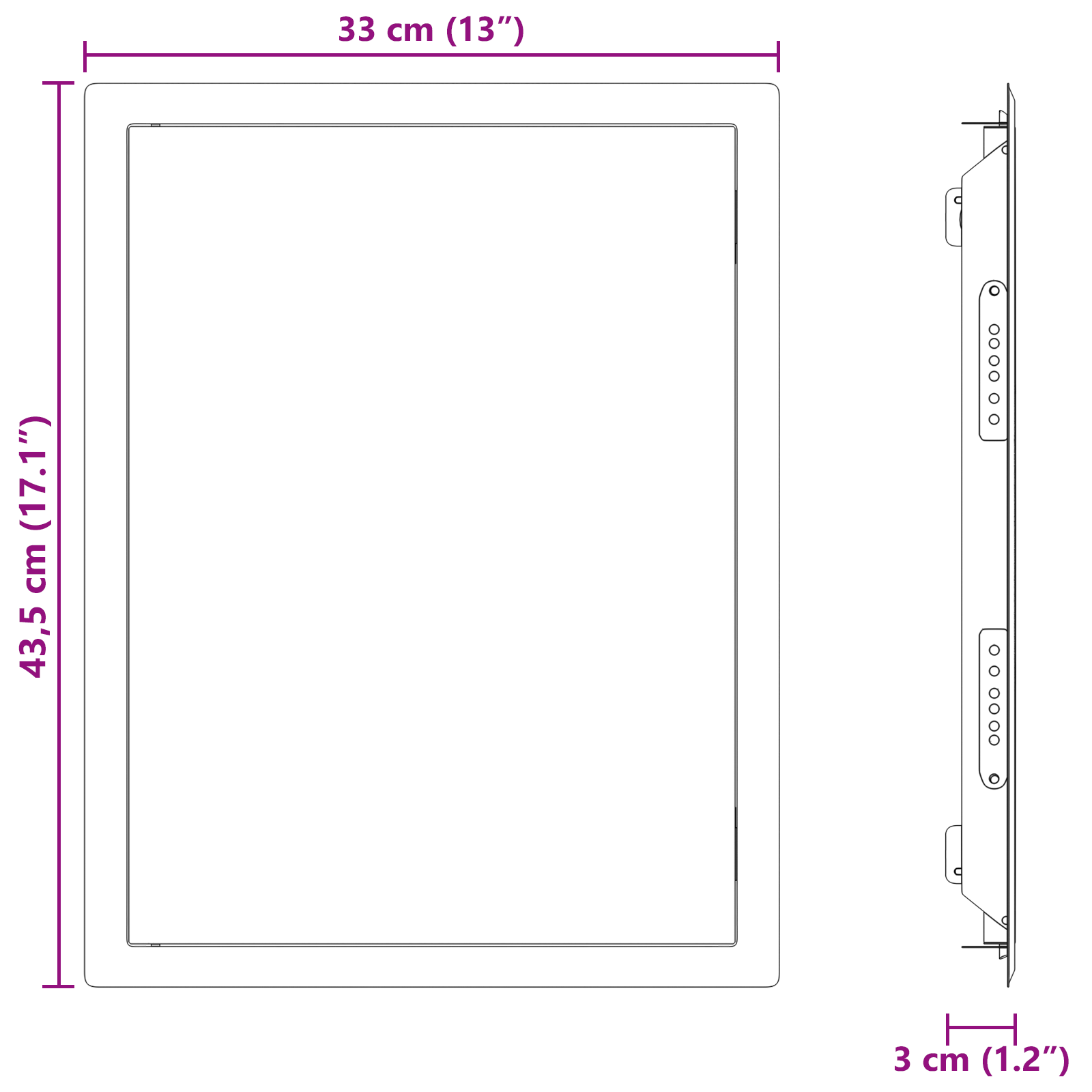 • Celkové rozměry: 43,5 x 33 x 3 cm (D x Š x V)