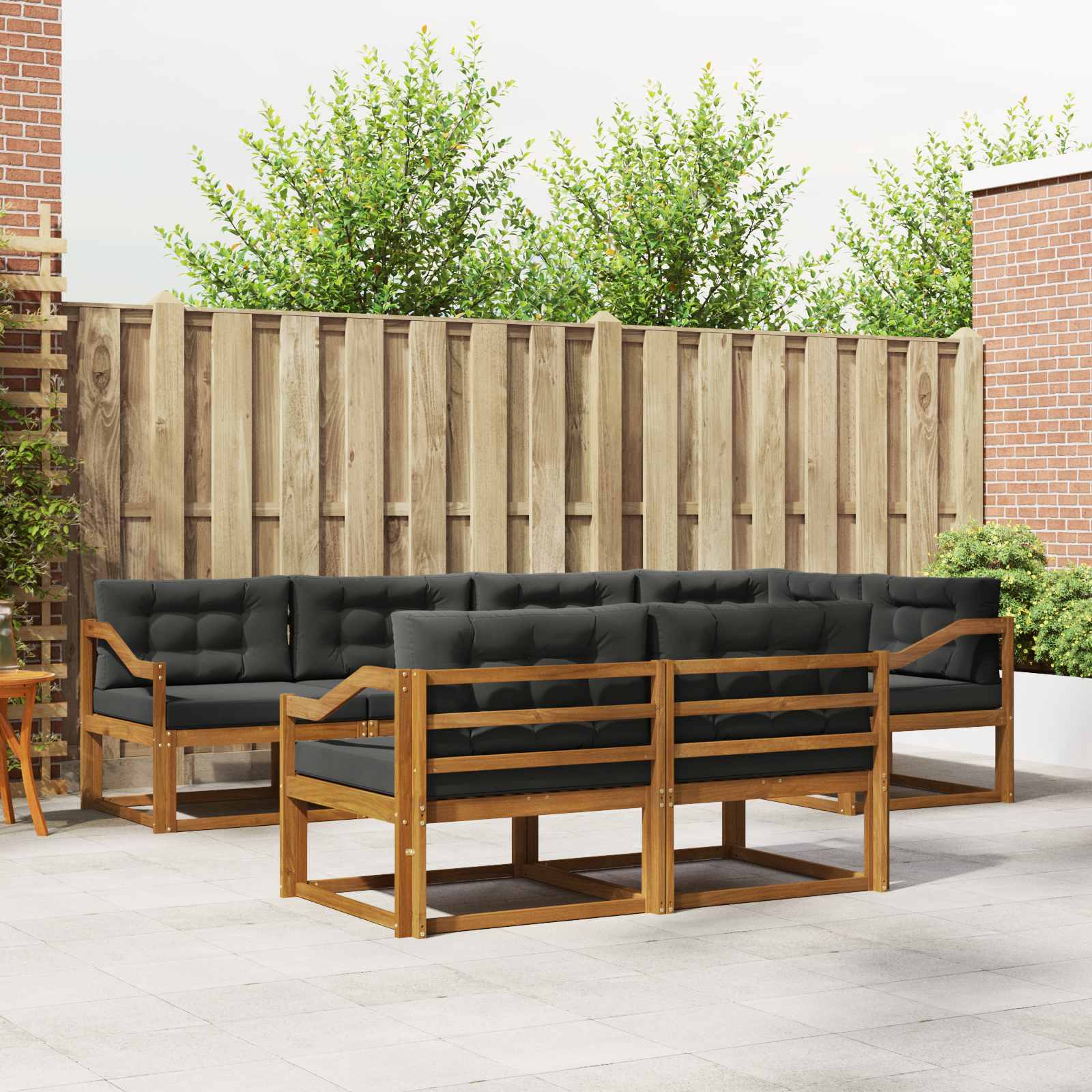Ta venkovní souprava na nábytek kombinuje styl a funkčnost, takže se stává skvělým centrem pro jakoukoliv zahradu nebo terasu. Její moderní vzhled, s čistýma liniema a jednoduchým designem, přidává eleganci a zároveň podporuje relaxaci a setkávání venku. Vyrobená jen z masivního akáciového dřeva, souprava je pevná a vypadá skvěle, což z ní dělá skvělou volbu pro ty, kdo chtějí spojit praktičnost s hezkým venkovním nábytkem. Odolné masivní akáciové dřevo: Tato venkovní souprava ze dřeva se vyznačuje super odolností proti jakémukoli počasí. Její silná konstrukce zajišťuje stabilitu a dlouhou životnost. Teplý přírodní tón krásně ladí se zahradou nebo terasou. Odolný design proti počasí: Povrch má lakovanou úpravu, která skvěle chrání před sluncem, deštěm a jinými vlivy. Lesklý povrch zajišťuje, že nábytek vypadá i funguje skvěle, takže vydrží léta na vaší zahradě, terase nebo na dvorku. Komponenty a design: Každý kus, od opěrek po zádové opěrky, je navržený jak pro styl, tak pro funkci. Oceníte přednosti, jako je další pohodlí, a souladný design vytváří hezký, vizuálně příjemný celek vhodný pro různé venkovní akce. Pohodlí a flexibilita: Modulární design vám dává spoustu možností, jak si sestavit varianty, a tak dokáže dobře pasovat na různé prostory a potřeby. Ideální pro relaxaci, rodinné akce nebo klidné čtení, tahle souprava se snadno přizpůsobí jakémukoli venkovnímu prostředí, aby co nejvíc zvýšila váš komfort. Jednoduchá údržba: Aby nábytek vypadal skvěle, stačí ho otřít vlhkým hadříkem a vyhnout se hodně ostrým čističům. Pravidelná péče pomůže udržet vzhled a prodlužuje životnost nábytku.