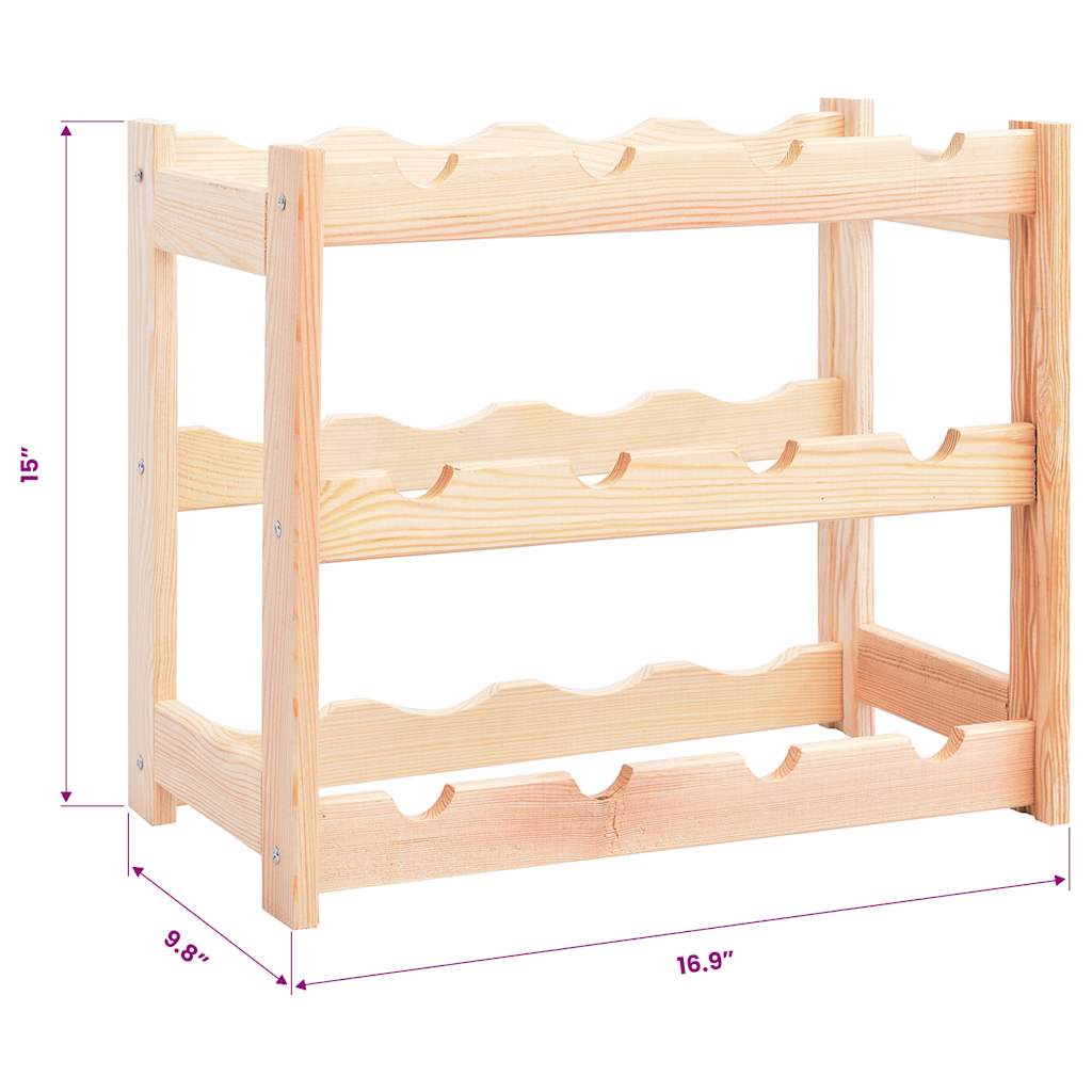 Uložte, nechte zrát a vystavte své víno stylově s tímto dřevěným stojanem na víno! Masivní borové dřevo: Tento stojan na víno je vyrobený z masivní borovice. Masivní borové dřevo je krásný přírodní materiál. Borové dřevo má rovnou kresbu a obsahuje suky, které materiálu dodávají jeho charakteristický, rustikální vzhled.Spousta úložného prostoru: Regál na víno má 3 patra, kam se vejde až 9 lahví vína. Každá police pojme 3 lahve vína.Zvlněný design: Díky tomuto designu bude korek mokrý, víno tak zůstane čerstvé.Široké použití: Stojan na láhve vína je vhodný do kuchyně, spíže, komory, jídelny, sklepa, na kuchyňskou linku, do baru nebo vinného sklípku atd.