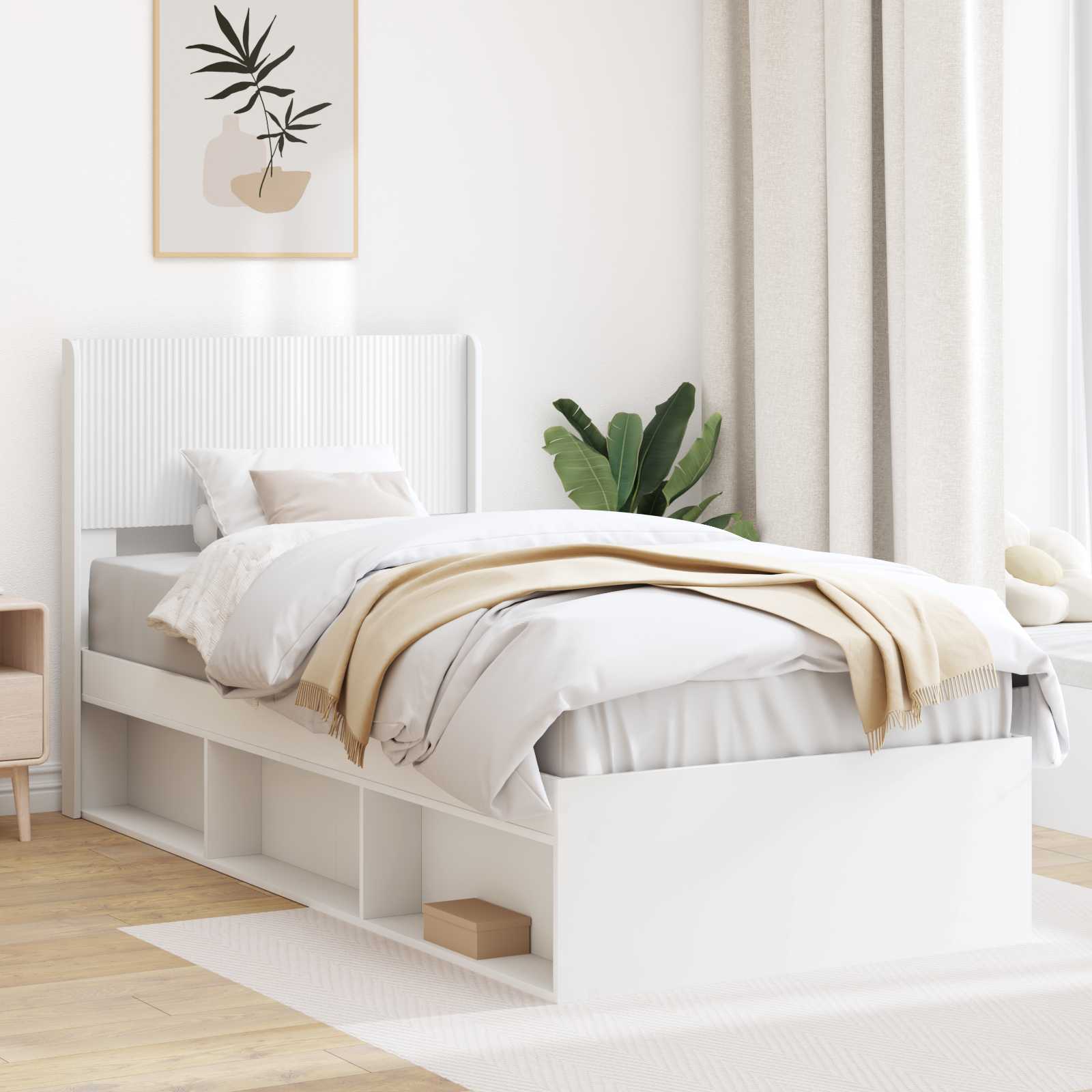 Postelový rám s úložným prostorem a hlavovou opěrkou Bílá