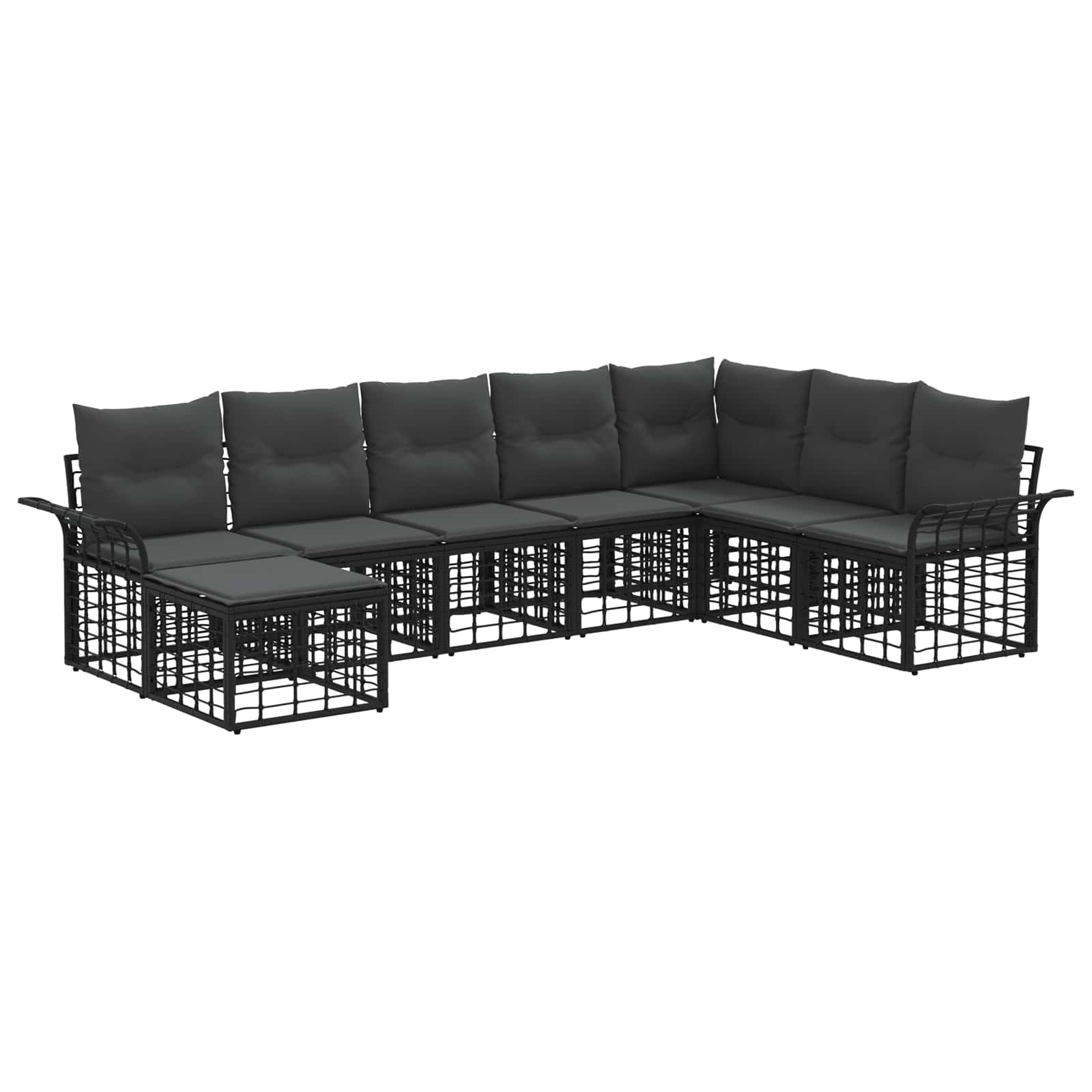 Venkovní pohovková souprava 8 pcs Černá a tmavě šedá Polyester