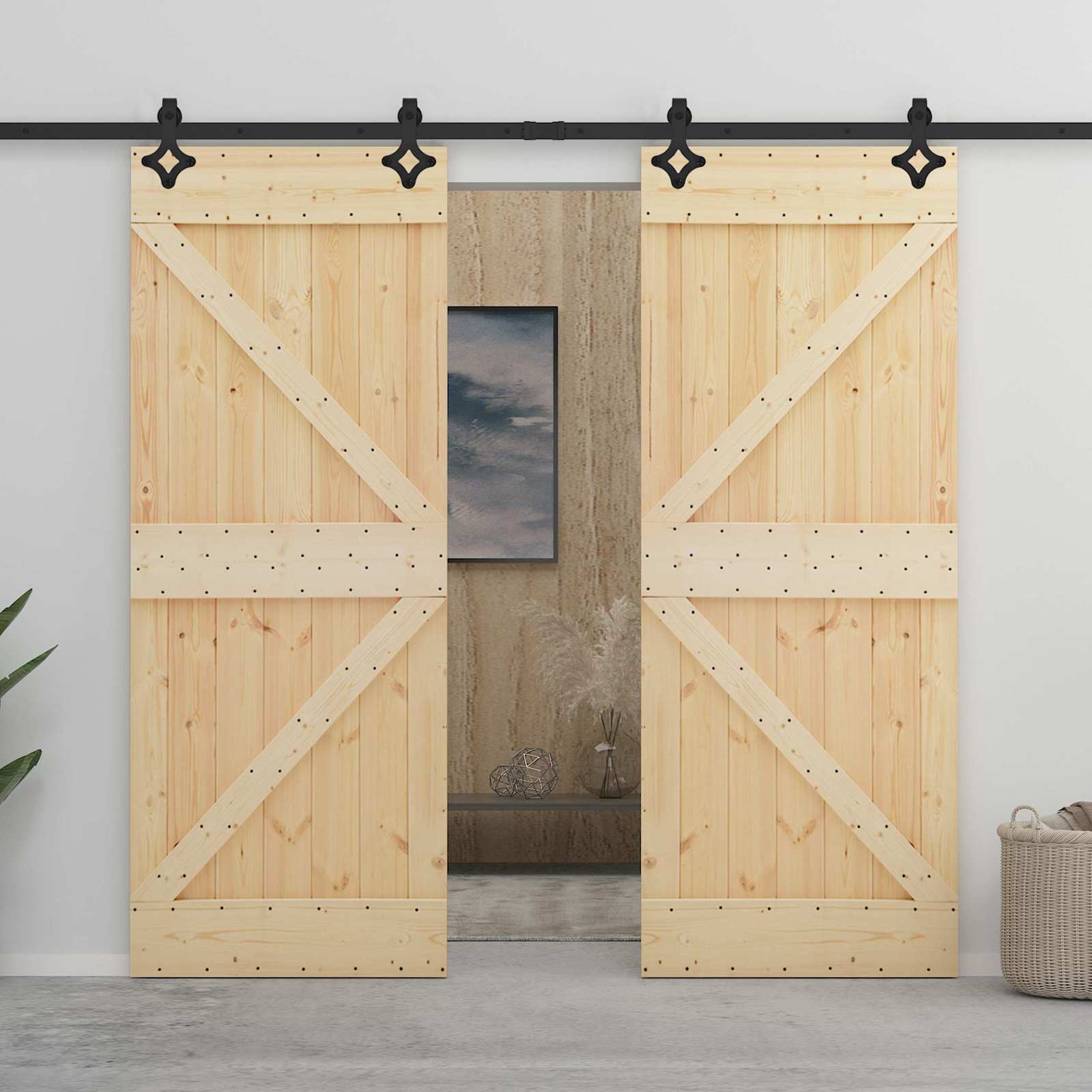 Posuvné dveře 2 pcs Přirozená a černá Masivní borovicové dřevo