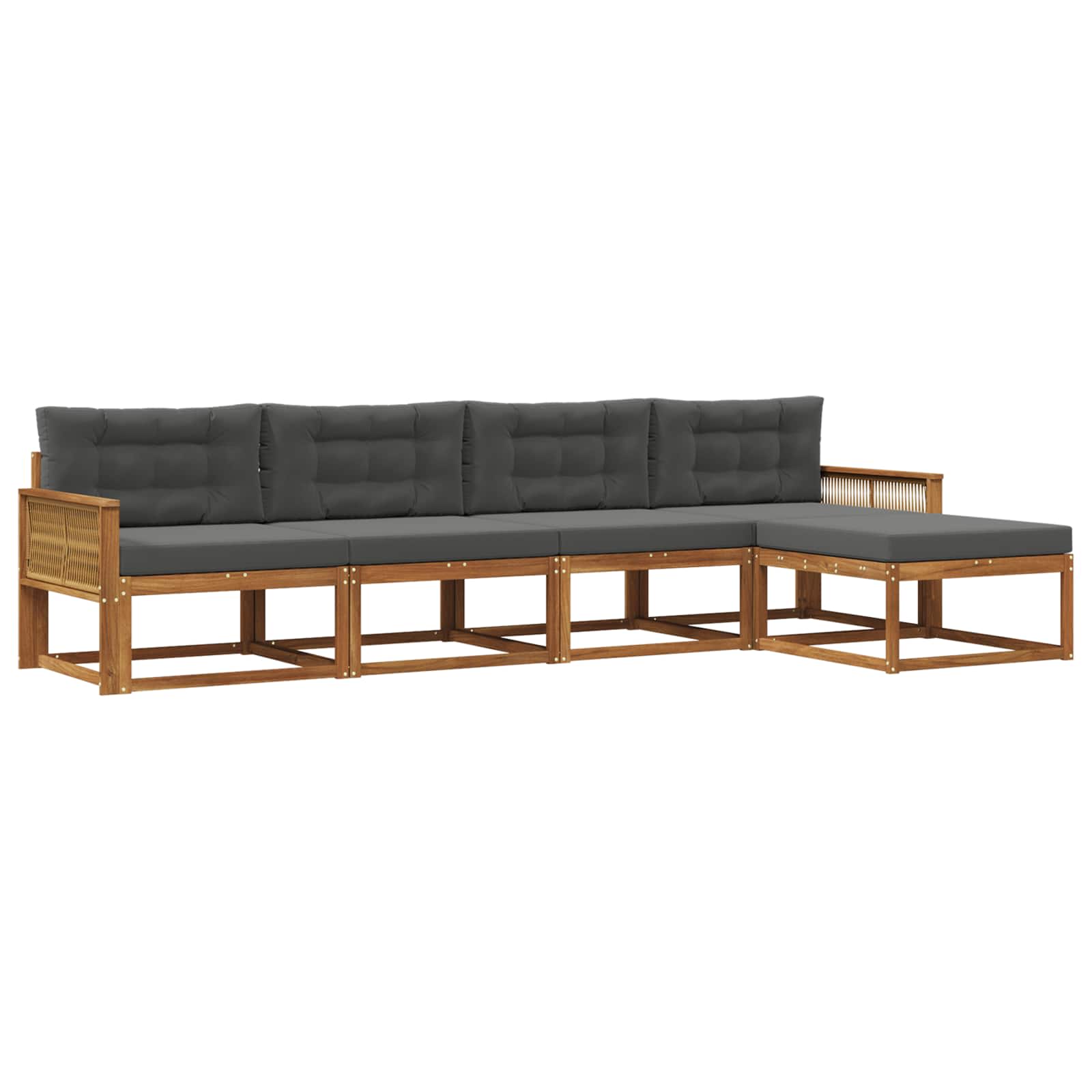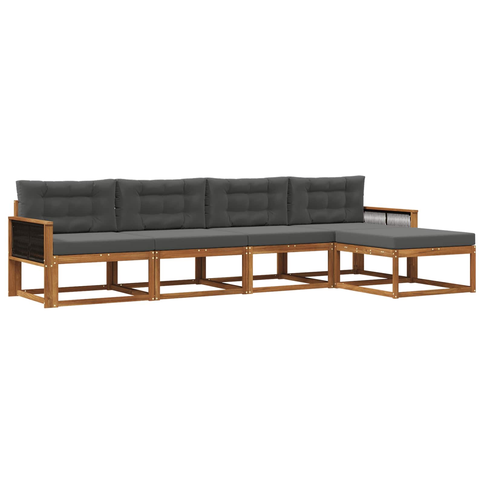 Tento set venkovních sedaček je skvělou volbou do jakékoli zahrady, patio nebo dvorku. S moderním a jednoduchým vzhledem se hodí do různých venkovních prostor. Hřejivý hnědý odstín akáciového dřeva dodává útulnost a poklidnou atmosféru, vyzývá vás k odpočinku. Je modulární, takže si můžete nastavit konfiguraci přesně podle potřeby, ať už pořádáte rodinné setkání nebo velkou oslavu. Masivní akáciové dřevo: Tento set venkovních sedaček je z robustního akáciového dřeva, které je trvanlivé a má krásný hnědý odstín. Přírodní textura dodává prostoru nádech luxusu, slibuje dlouhou životnost bez ohledu na počasí. Lamelový opěradlo: Díky pevnému lamelovému rámu, sedačka nabízí pohodlné sezení. Pevné lamely jsou navrženy tak, aby poskytovaly skvělou podporu a umožnily hostům relaxovat v příjemném venkovním prostředí. Odolné vůči počasí: Set je navržen tak, aby odolal venkovním podmínkám. Jeho vlastnosti ho chrání před UV zářením a zajišťují, že bude vypadat skvěle po celý rok. Modulární flexibilita: Set je modulární, takže si ho můžete uspořádat podle potřeby. Ať už potřebujete různé uspořádání pro zábavu nebo útulné místečko na čtení, snadno ho přizpůsobíte svým představám. Praktické pokyny pro údržbu: Set se snadno udržuje. Stačí ho otřít vlhkým hadříkem. Pro ochranu před sluncem, použijte potah, když ho nepoužíváte. Vyhněte se silnému počasí, aby si dlouho udržel krásu.