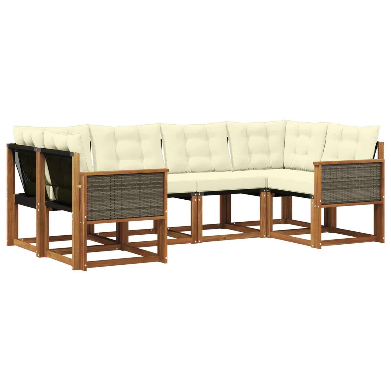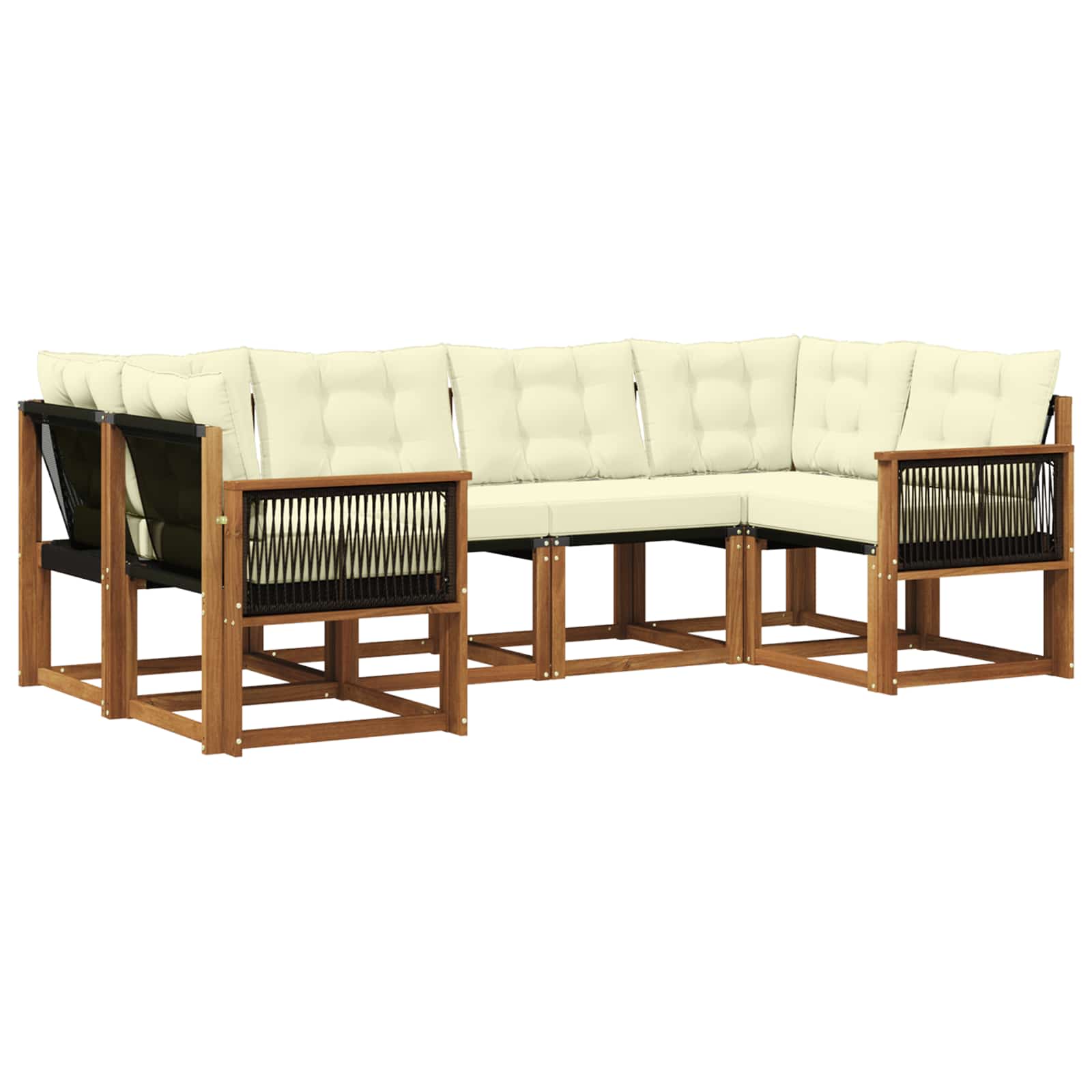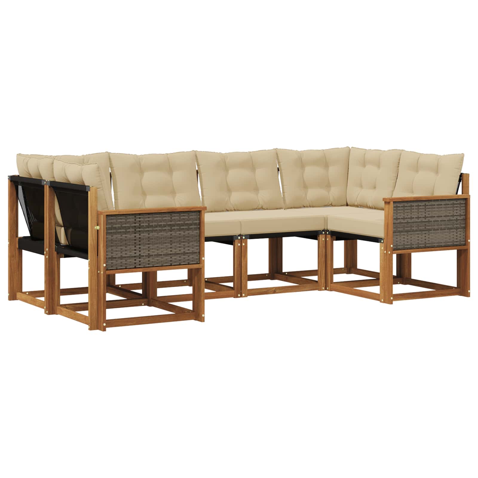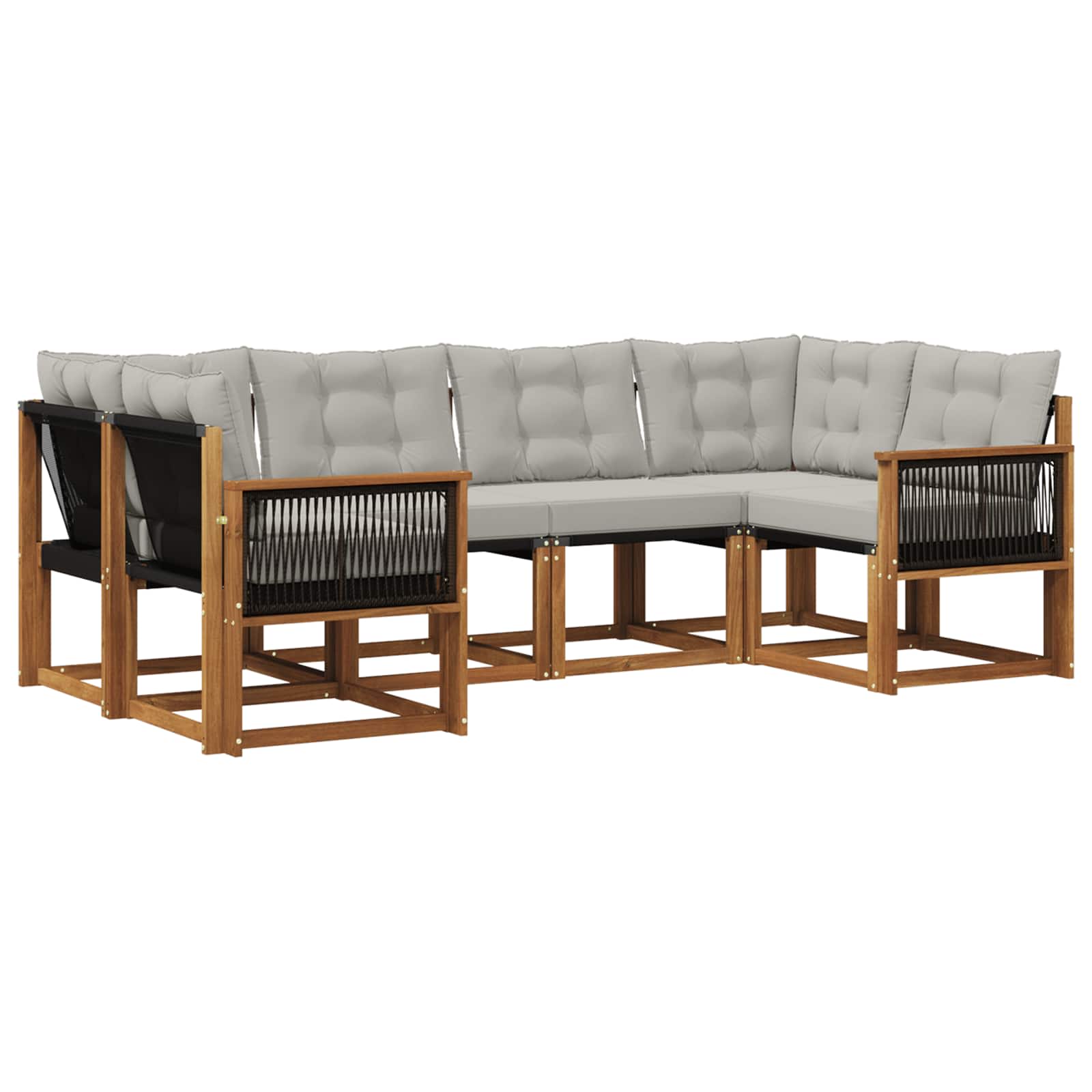 Tato moderní sedací souprava krásně doplní venkovní prostory a nabízí styl i funkčnost. S čistými liniemi má sofistikovaný pocit, skvělý pro současné zahrady. Perfektní pro setkání na patio nebo u bazénu, souprava nabízí pohodlné posezení s robustní konstrukcí a luxusními polštáři, které vyzývají k lenošivým odpoledním nebo veselým večerním srazům. Rám z masivního akáciového dřeva Souprava je vyrobena z pevného akáciového dřeva, které je silné a má krásnou přirozenou strukturu. Dodává každému venkovnímu prostoru teplý vzhled a zajišťuje odolný rám, co přežije každodenní používání a venkovní podmínky. Textilní pohodlí Díky textilnímu sedáku sedací souprava poskytuje skvělé pohodlí a podporu. Materiál byl vybrán pro svou odolnost vůči vyblednutí, takže si zachovává jasnost a strukturu i na slunci. Tato kombinace materiálů je praktická a elegantní, ideální pro venkovní nábytek. Voděodolné polštáře Pořádně polstrované polštáře z voděodolné tkaniny jsou skvělé na relaxaci. S lehkým jádrem odolávají vlhkosti a mají zipy pro snadné sundání a mytí, což usnadňuje údržbu. Praktické opěrky Opěrky z akáciového dřeva poskytují pohodlnou oporu pro uvolněné sezení. Mají estetický půvab a spolehlivou oporu, což dává celému rámu konzistentní a příjemný pocit při sezení. Snadno čistitelné povrchy Souprava vyžaduje minimum údržby, stačí ji otřít vlhkým hadříkem. Díky tomu zůstává tak atraktivní jako v den, kdy dorazila, takže si můžete více užívat pohodlného lenošení.