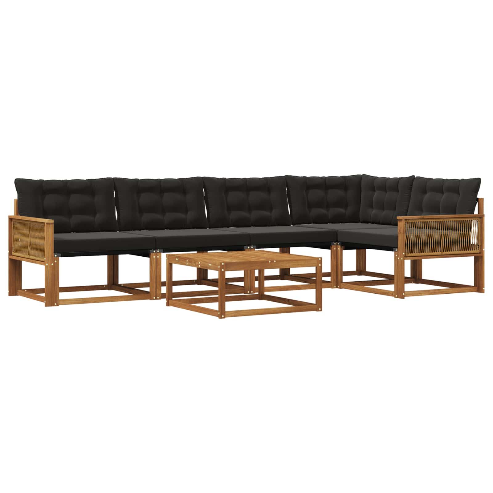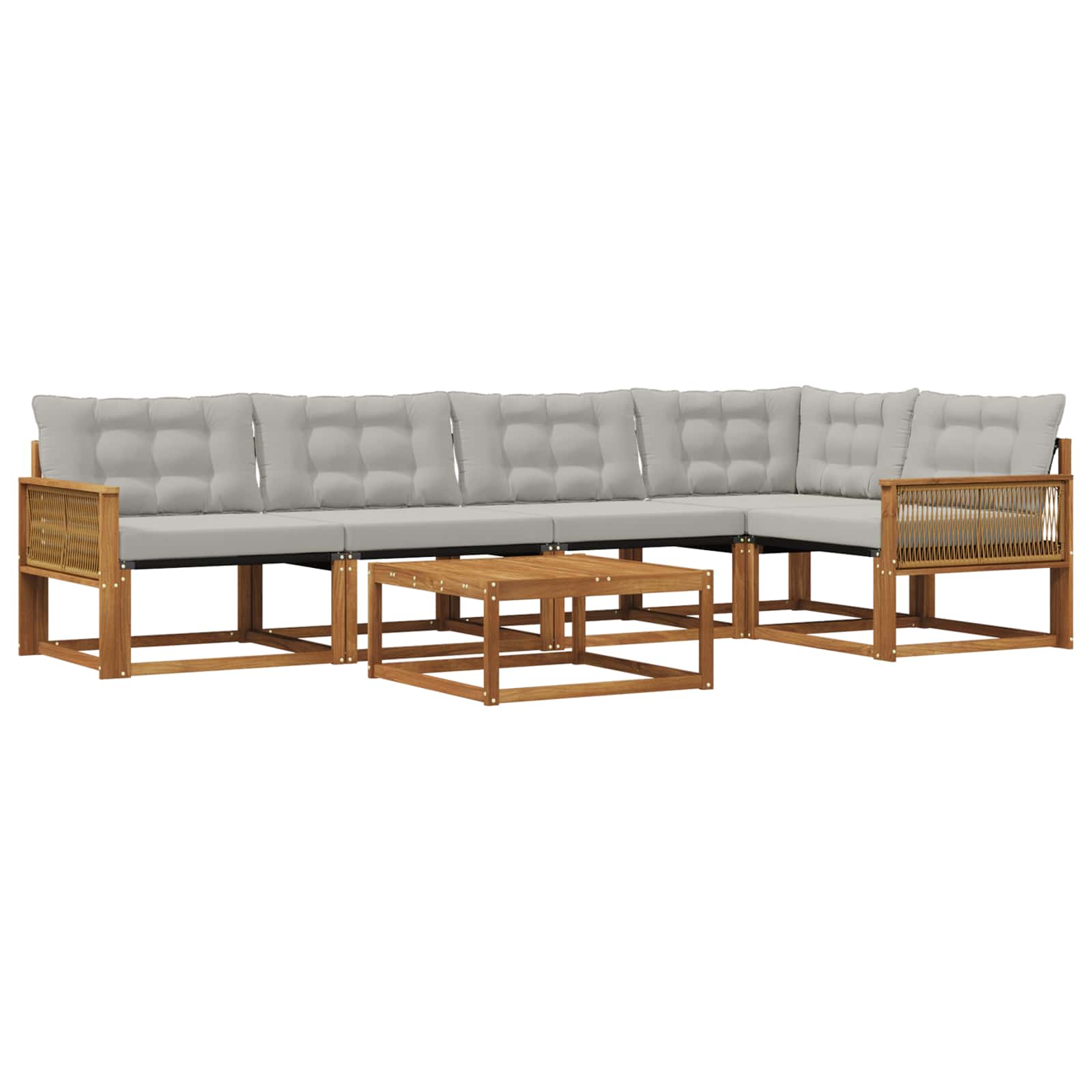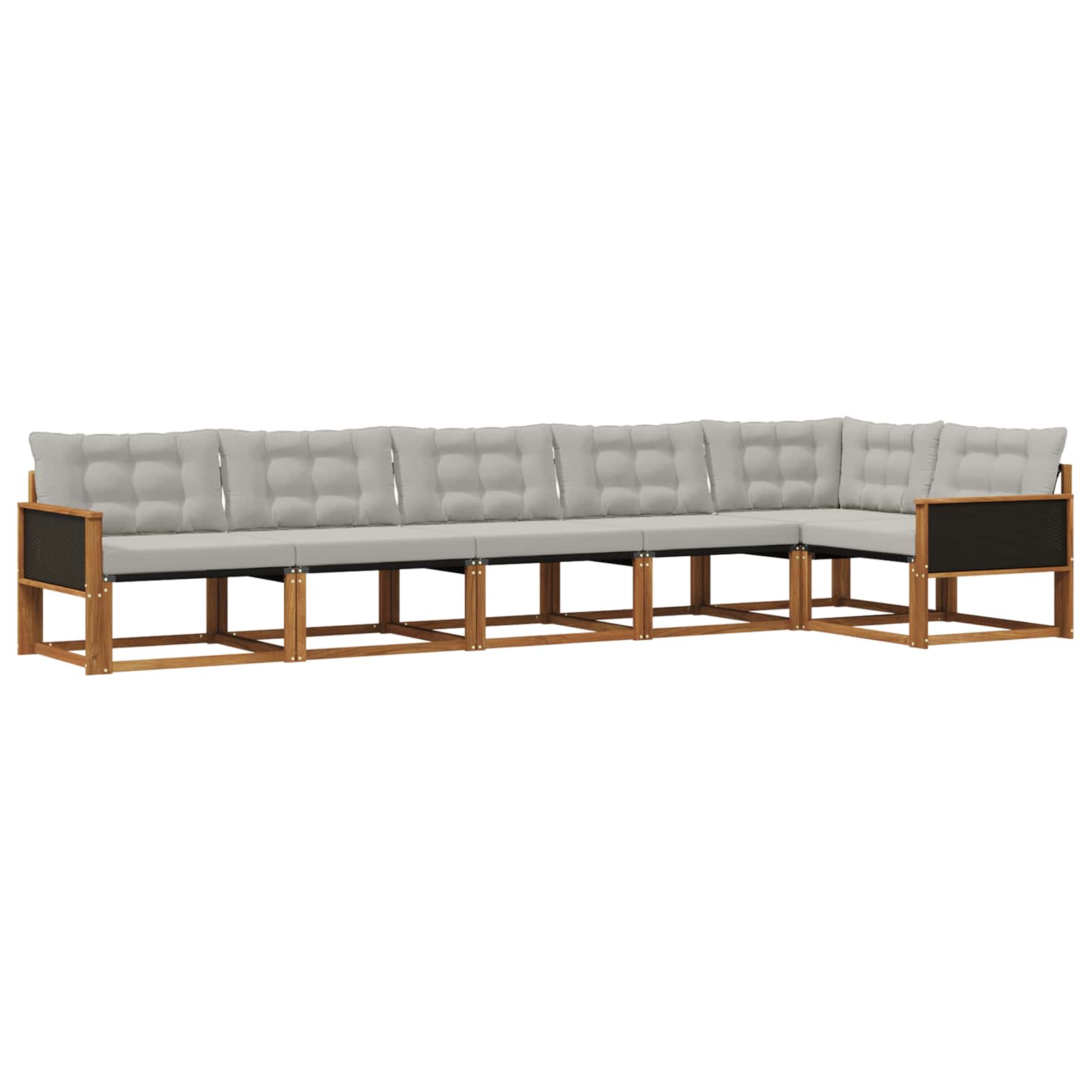 Venkovní nábytek spojuje styl a funkčnost a vytváří tak středobod pro každou zahradu nebo terasu. Jeho moderní design se vyznačuje čistými liniemi a minimalistickým zdobením, což dodává eleganci a podporuje venkovní relaxaci a setkání. Celý vyrobený z masivního akáciového dřeva, nábytek je trvanlivý a zachovává si svůj vzhled, což ho dělá ideální volbou pro ty, kteří chtějí praktičnost a styl. Odolné masivní akáciové dřevo: Tento venkovní nábytek, vyrobený z masivního akáciového dřeva, je odolný a skvěle snáší venkovní podmínky. Tuhá konstrukce zajišťuje stabilitu a dlouhou životnost, zatímco přírodní odstín obohatí jakoukoli zahradu nebo terasu. Design odolný proti počasí: Tato outdoorová souprava má lakovaný povrch, který nabízí další ochranu před slunečním zářením a lehkým deštěm. Polished finish pomáhá zachovat vzhled i funkčnost a zajistí dlouhou životnost pro váš venkovní prostor. Jednotné díly a design: Každý prvek, od opěrek po opěradla, je navržený jak pro styl, tak pro komfort. Podpěry zajišťují dodatečné pohodlí, zatímco celkový design dává vizuálně příjemný dojem pro různé venkovní akce. Pohodlí a univerzálnost: Modulární design umožňuje flexibilní uspořádání kdekoli potřebujete. Ideální pro odpočinek, setkání s kamarády nebo klidné chvíle s knížkou; tahle souprava se jednoduše přizpůsobí každému venkovnímu prostředí. Snadná údržba: Aby byl nábytek stále v dobré kondici, stačí otírat povrch vlhkým hadříkem a vyhnout se hrubým čisticím prostředkům. Pravidelná péče zajišťuje, že nábytek dlouho vypadá dobře a slouží vám co nejdéle.