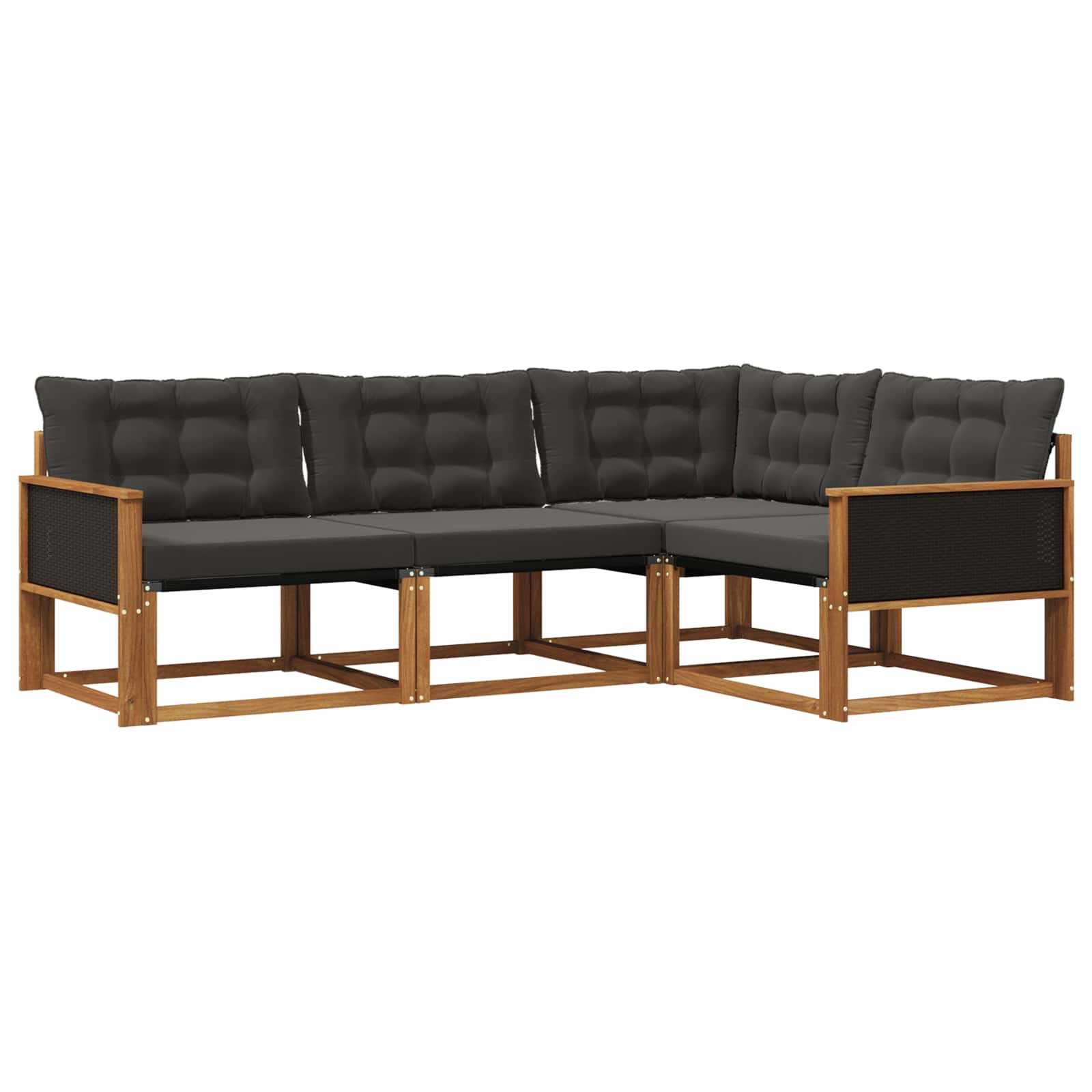 Venkovní pohovková souprava s polštářem 4 pcs Přirozená a černá