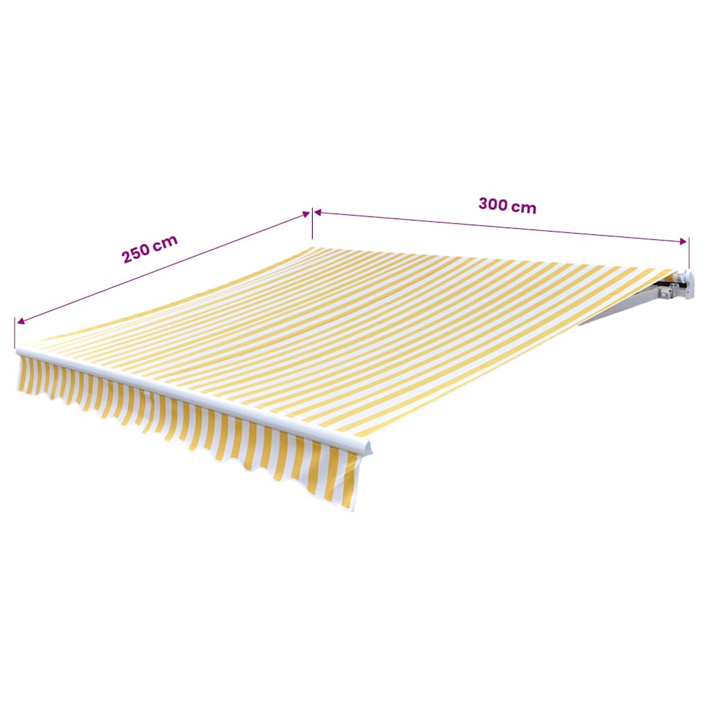 Naše skládací markýza vám na zahradě nebo na dvorku vykouzlí příjemný chládek! Nastavitelná markýza disponuje pevným hliníkovým rámem s kovovou výztuží. Je proto robustní a hodně toho vydrží. Stříška je vyrobená z vysoce kvalitní polyesterové tkaniny potažené vrstvou PU. Díky tomu markýza odpuzuje vodu a nečistoty a odolává UV záření a nepřízni počasí. Pomocí přiložených konzolí ji snadno namontujete na stěnu. Upozorňujeme, že je možné markýzu ovládat pouze klikou po levé straně. Před montáží a použitím výrobku je třeba si přečíst návod k obsluze. Tento návod si uschovejte pro budoucí použití. Tento výrobek je určen pouze pro venkovní a domácí použití jako ochrana před sluncem nebo dekorace. Nikdy jej nepoužívejte k jiným účelům ani výrobek neupravujte. Nepoužívejte jej na místech, kde dochází k vibracím, impulzům neob vysokým teplotám, například na stěnách v blízkosti pecí. Při montáži a nastavování markýzy vždy používejte vhodné osobní ochranné pomůcky. Při práci ve velkých výškách hrozí nebezpečí pádu, používejte vhodnou ochranu proti pádu. Při montáži buďte opatrní, může hrozit nebezpečí rozdrcení nebo useknutí. NEODSTRAŇUJTE bezpečnostní fólie. Tyto fólie lze odstranit až po dokončení všech montážních kroků, po upevnění všech šroubů a po připevnění výrobku ke stěně. Při předčasném odstranění fólie může dojít k vážnému zranění. Tento výrobek a jeho upevňovací díly jsou vhodné pouze pro instalaci na hladkou cementovou zeď nebo stabilní neomítnuté zdivo. Pokud stěna/zdivo vykazuje trhliny, je třeba se poradit s odborníkem. Pokud má vaše budova vnější plášť (např. izolaci, dvojitou cihlovou stěnu nebo cihlový obklad), měl by instalaci provést odborník. Nikdy neinstalujte na vysokých a větrných místech, protože by sluneční clona mohla spadnout a zranit osoby. Markýzu neinstalujte, pokud zjistíte, že jsou některé díly poškozené nebo zcela chybí. Vnější žaluzie se musí stáhnout v případě, že je rychlost větru vyšší než 28 km/h. Před otevřením markýzy se ujistěte, že jsou všechny držáky bezpečně připevněny ke stěnovým hmoždinkám a všechny šrouby jsou řádně dotaženy. VŽDY markýzu zavírejte při silném nebo prudkém větru, dešti a v době, kdy ji nepoužíváte. V opačném případě může dojít ke zranění osob a/nebo poškození majetku. Také výsuvná ramena jsou pod vysokým napětím a mohou způsobit vážné poškození nebo zranění. Děti by měly být pod dohledem, aby se zajistilo, že si se zařízením nebudou hrát. Nepoužívejte jej, pokud je nutná oprava nebo seřízení. Nepoužívejte markýzu, pokud se v její blízkosti provádí údržba, například mytí oken. Provoz v mrazivých podmínkách může markýzu poškodit. Nepokládejte na rám těžké věci, protože by mohly spadnout a způsobit poškození. Příliš pevné a příliš volné upevňovací prvky by mohly způsobit poškození výrobku nebo být nebezpečné pro osoby. Upozornění: Tkanina by se během provozu neměla prověšovat, jinak se na ní bude hromadit voda. Tkaninu nerozbalujte a neperte. Pokud potřebujete látku vyměnit, obraťte se s žádostí o pomoc na odborníky. Při ovládání ručního spouštění se zataženou vnější roletou buďte opatrní, protože může dojít k jejímu rychlému pádu v důsledku slabých nebo poškozených pružin. Nebezpečí! Silná pružina. NEODSTRAŇUJTE toto lano, dokud nedokončíte všechny kroky montáže, všechny šrouby nejsou utažené a předmět není připevněn ke zdi! Varování! Při povolování ramen dbejte opatrnosti, neboť jsou pod mechanickým tlakem! Náhlé uvolnění skládacího ramene může způsobit zranění. Varování: Před použitím výrobku si pečlivě přečtěte návod k obsluze. Varování: Používání při teplotách pod bodem mrazu může produkt poškodit. Externí použití v budovách a jiných stavbách.