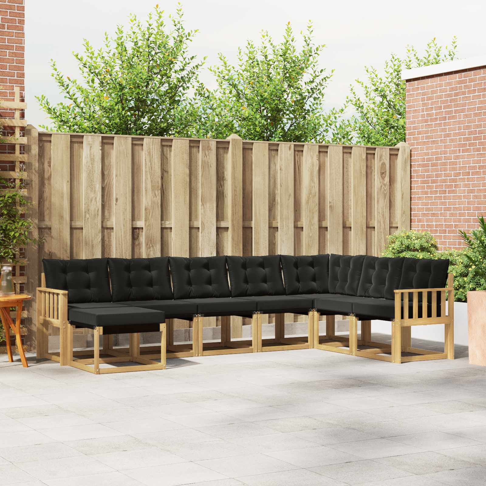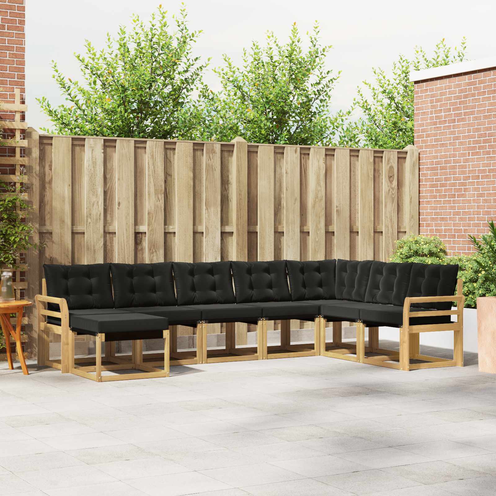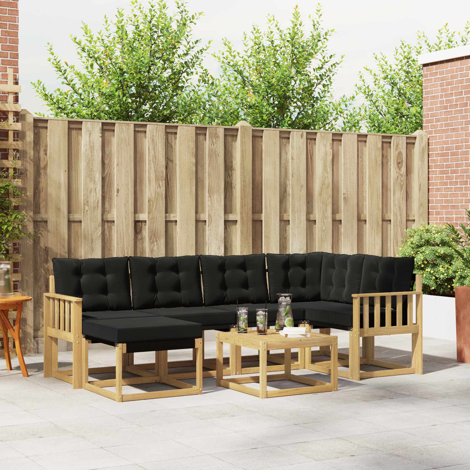 Tato souprava venkovního nábytku spojuje styl a funkčnost, takže se skvěle hodí na jakoukoli zahradu nebo terasu. Její moderní design s čistými liniemi dodává eleganci a podporuje pohodlné venkovní sezení a společenské akce. Celá souprava je vyrobená z masivního akáciového dřeva, takže je odolná a vypadá skvěle, což je ideální pro ty, kdo hledají praktický a stylový venkovní nábytek. Odolné masivní akáciové dřevo: Tato venkovní souprava je vyrobena z masivního akáciového dřeva, které je odolné a zvládne všechny venkovní podmínky. Stabilní konstrukce zajišťuje dlouhou životnost a přírodní hnědé tóny dodávají zahradě nebo terase skvělou atmosféru. Odolný design: Lakovaný povrch této soupravy dodává ochranu proti slunci a dešti. Udržuje vzhled a kvalitu, takže vaše zahrada, terasa nebo dvorek zůstávají stále atraktivní. Komponenty a design: Každý kus, od opěrek po opěradla, je navržen stylově a funkčně. Poskytuje pohodlné sezení, zatímco koherentní design tvoří vizuálně atraktivní celek. Pohodlí a všestrannost: Modulární design umožňuje různé uspořádání, podle vašich potřeb. Skvělá pro relaxaci nebo párty. Souprava se snadno přizpůsobí jakémukoli prostředí a maximalizuje pohodlí. Snadná údržba: Pro udržení nábytku v dobrém stavu stačí utírat povrch vlhkým hadříkem a vyhnout se silným čisticím prostředkům. Pravidelná péče zajišťuje dlouhověkost nábytku.