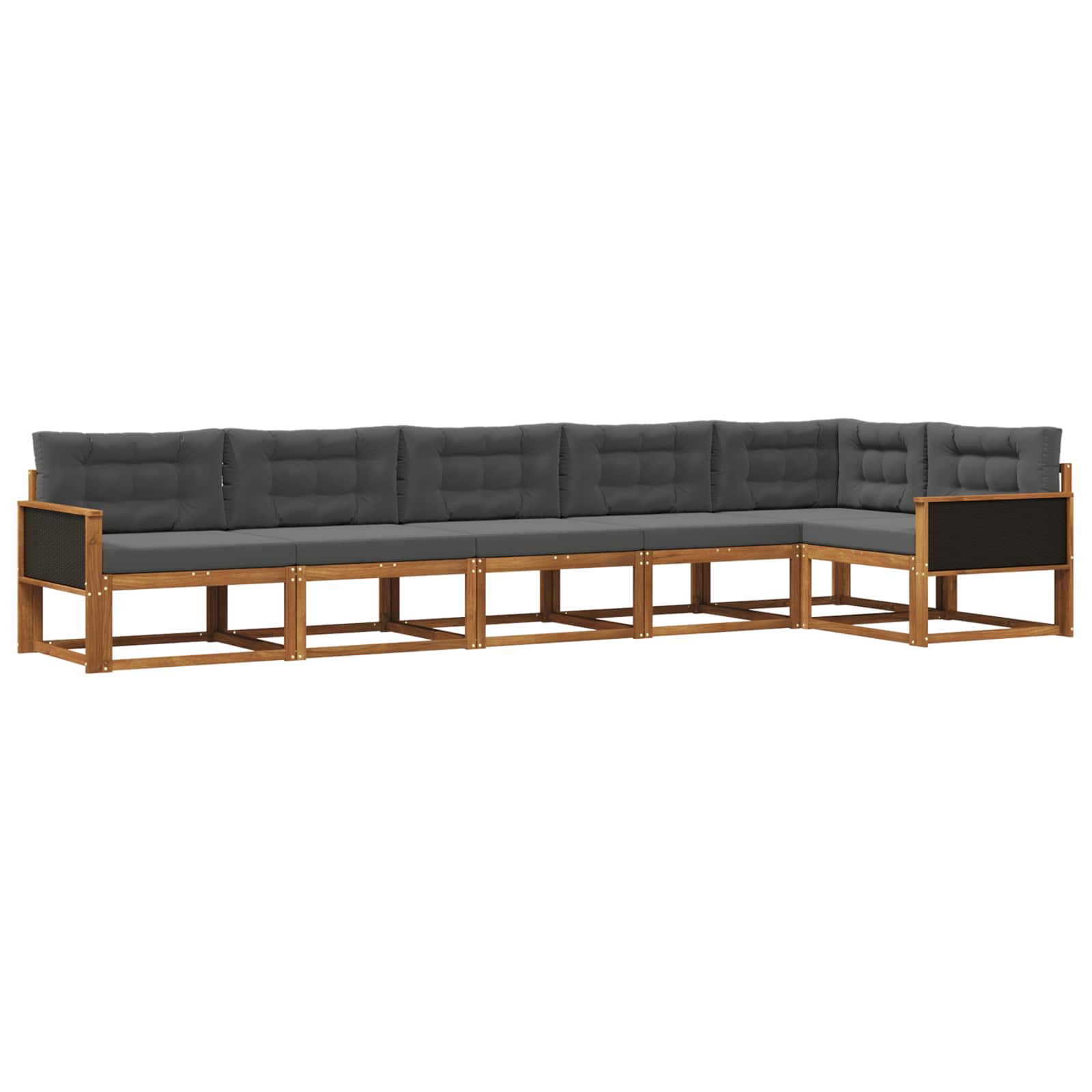 Tahle venkovní rohová sedačka má moderní design, který je jednoduchý a funkční, a zkrášluje každý venkovní prostor. Je vyrobená hlavně z masivního akáciového dřeva, což jí dodává elegantní a stylový vzhled, ideální pro letní párty nebo klidné chvíle u bazénu. Její hnědá barva se skvěle hodí do přírodního okolí, takže se stává atraktivním doplňkem teras, zahrad nebo bazénů. Může se pochlubit praktickými područníky a opěrkou, která zajišťuje pohodlí a přitom zachovává minimalistický styl. Odolnost materiálu: Tahle venkovní rohová sedačka je vyrobená z masivního akáciového dřeva, které je známé svou trvanlivostí a pěkným vzhledem. Přírodní akáciový povrch zaručuje, že bude stále krásná, ať už je léto nebo zima. To z ní dělá jak praktické sezení, tak hezký doplněk pro různé venkovní prostory. Výběr tohoto materiálu ukazuje náš důraz na trvanlivost a ekologickou odpovědnost. Flexibilní konfigurace: Navržená s důrazem na pohodlí a funkčnost, modulární design sedačky umožňuje snadno měnit uspořádání podle potřeby a množství lidí. Ať už pořádáte zahradní oslavu, nebo si chcete jen tak odpočinout, modulární část sedačky se přizpůsobí jakékoli situaci. Funkce pro pohodlí: Sedačka má podpůrnou opěrku a promyšlené područky, které poskytují maximální komfort. Ergonomický design umožňuje dlouhé používání, ideální pro relaxaci a společenské akce, a zajišťuje pohodlí pro všechny hosty. Funkční design: Praktické područky zvyšují uživatelský zážitek a umožňují pohodlně relaxovat, zatímco krásná lamelová konstrukce směruje moderní estetiku i funkčnost, což přispívá k úžasnému zážitku z venkovního bydlení. Snadná údržba: Údržba je snadná díky materiálům, které se snadno čistí. Stačí otřít vlhkým hadříkem, hlavně po špatném počasí. Ochranné kryty se doporučují na delší slunění, aby dřevo zůstávalo krásné. Jednoduché tipy na údržbu zajistí, že se o nábytek nebudete muset trápit, a je ideální pro zaneprázdněné lidi.