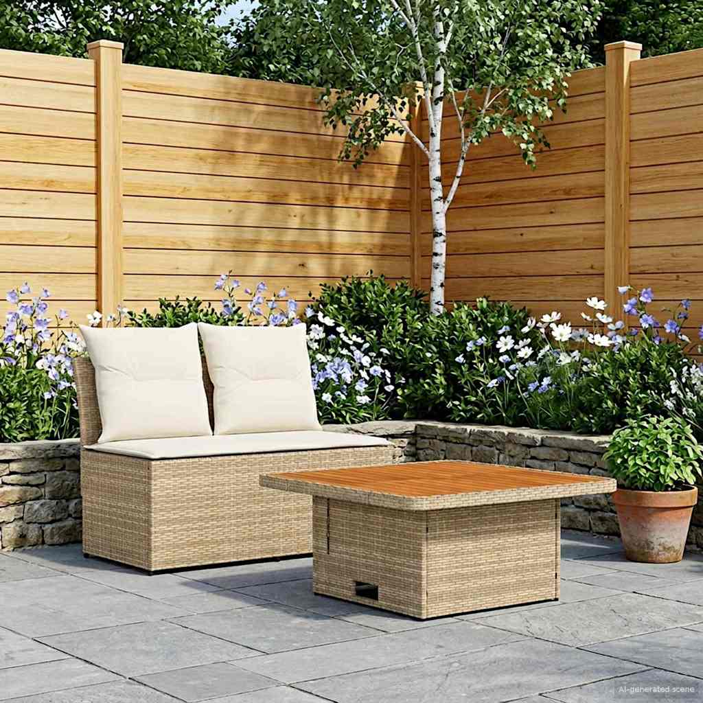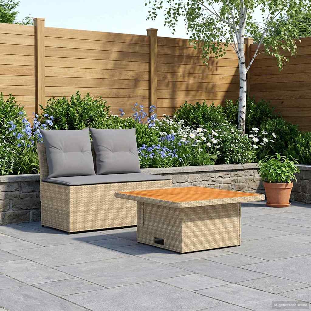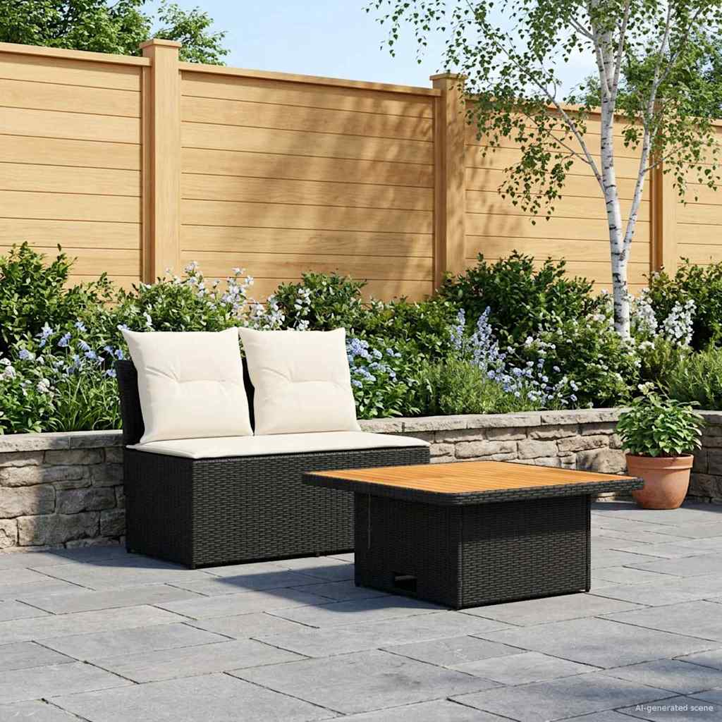 2 Kus Zahradní střední pohovka s výsuvným stolem polyratan